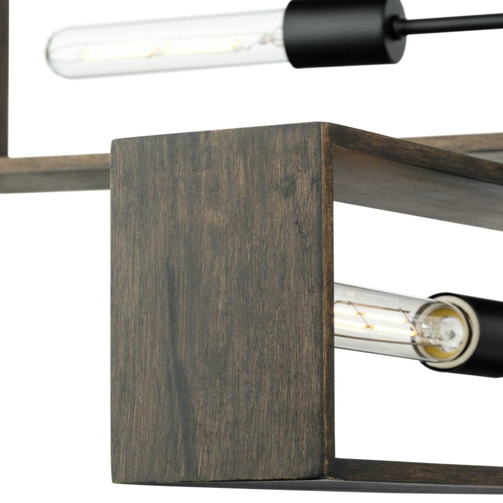 Simple rectangles form the building blocks of the Boundary Chandelier. The light's modern organic design is crafted from natural wood and offers warmth and timeless style to contemporary settings.Two rectangles intersect to form an open frame showcasing light sources that deliver clear illumination to the surrounding space. This light is part of the Progress Lighting Design Series, a lighting collection offering fashionable styles and affordable luxury lighting for the home.