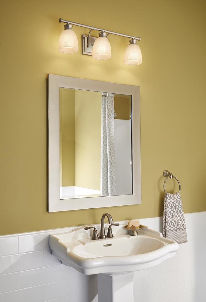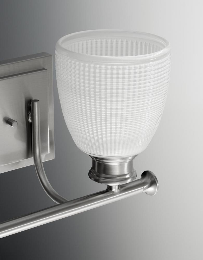Ideal for a bathroom;Perfect for modern and transitional style settings;Handsome antique bronze finish;Elegant etched glass shades;Mount the light fixture facing up or down;Use 4 medium base bulbs that are sold separately (100 W max - LED/CFL/incandescent)