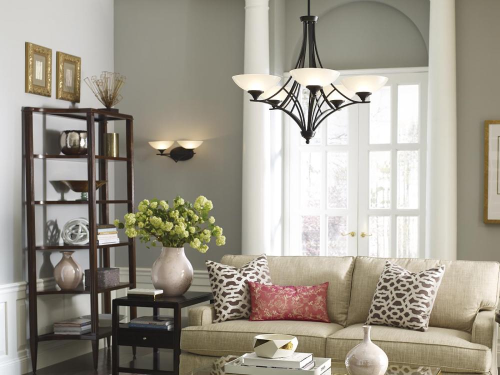 Ideal for a bathroom;Perfect for traditional and transitional style settings;Beautiful brushed nickel finish;Elegant etched glass shades;Mount the light fixture facing up or down;Use 3 medium base bulbs that are sold separately (100 W max - LED/CFL/incande