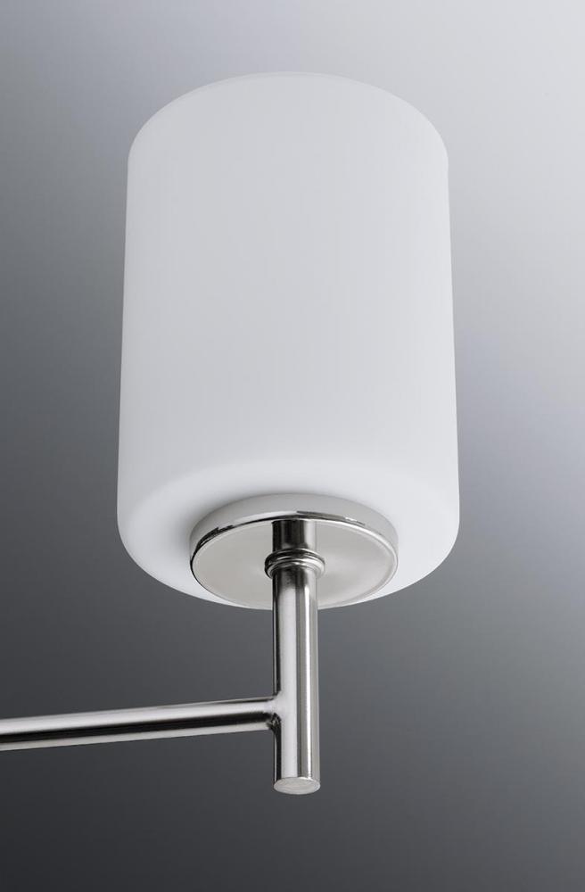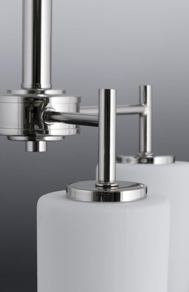 Ideal for a bathroom;Perfect for modern and transitional style settings;Beautiful brushed nickel finish;Elegant etched painted white glass shades;Mount the light fixture facing up or down;Use 3 medium base bulbs that are sold separately (100 W max - LED/CF
