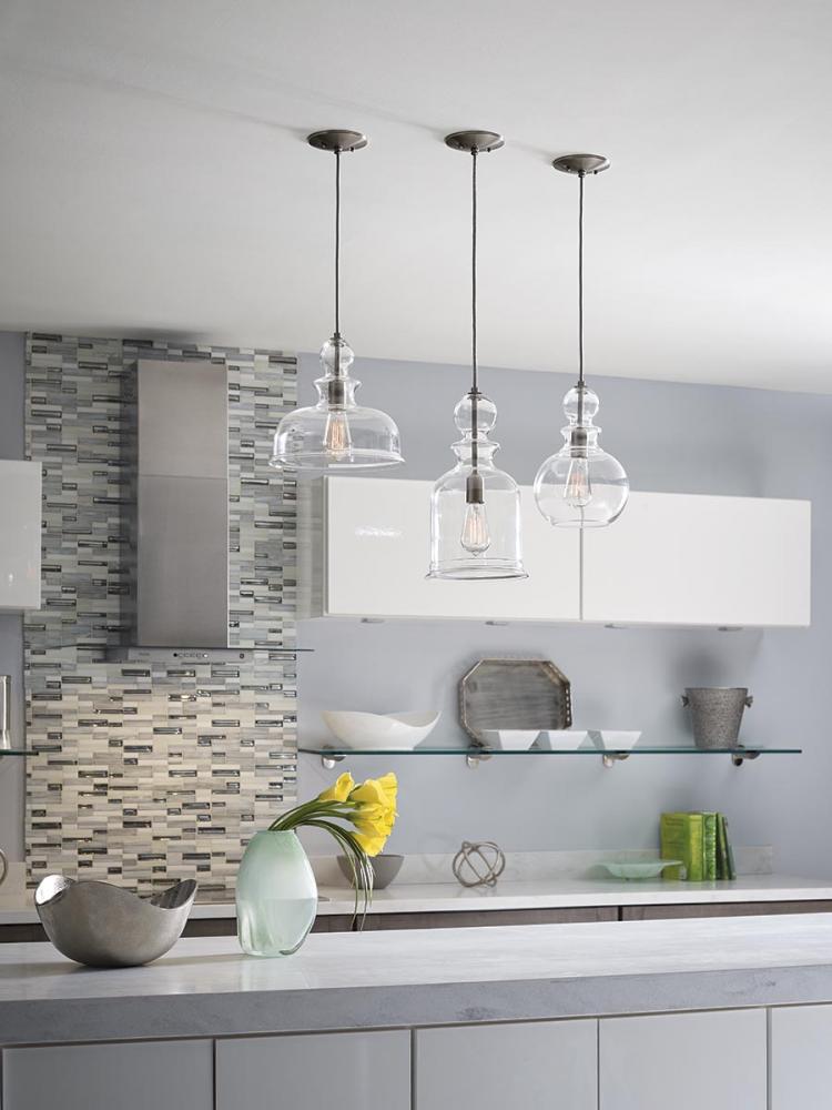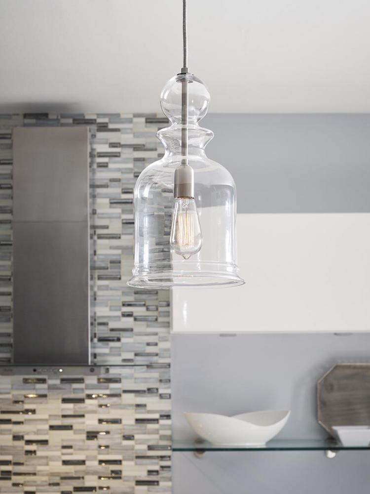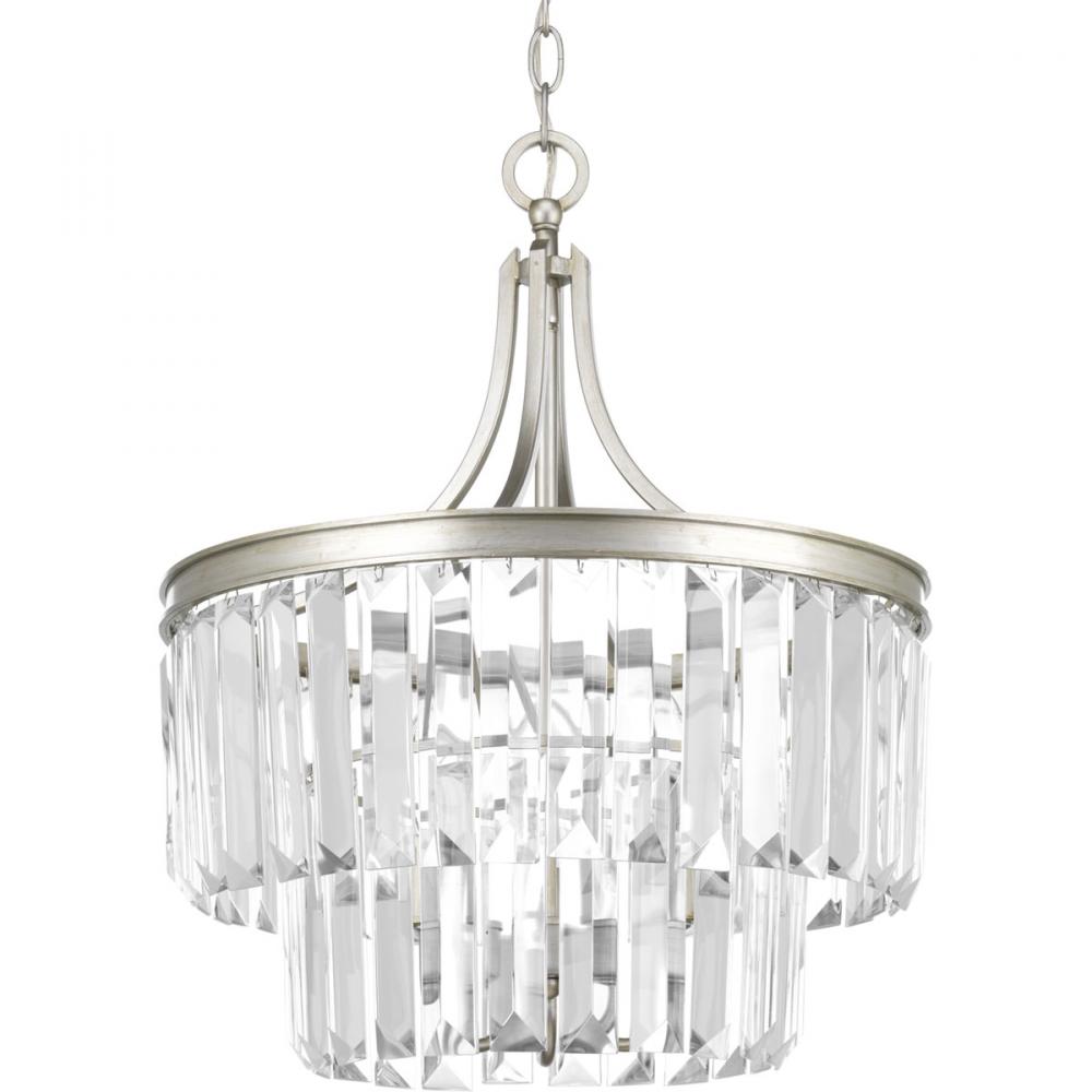 Elements that sparkle create an instant statement within the home.;Prismatic glass pendants offer a livable luxury feel.;Architecturally- styled frame in Silver Ridge finish.