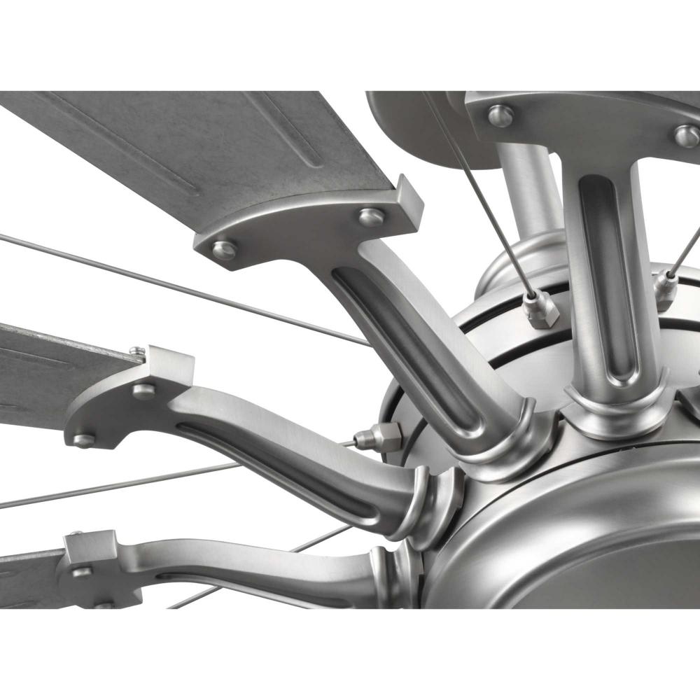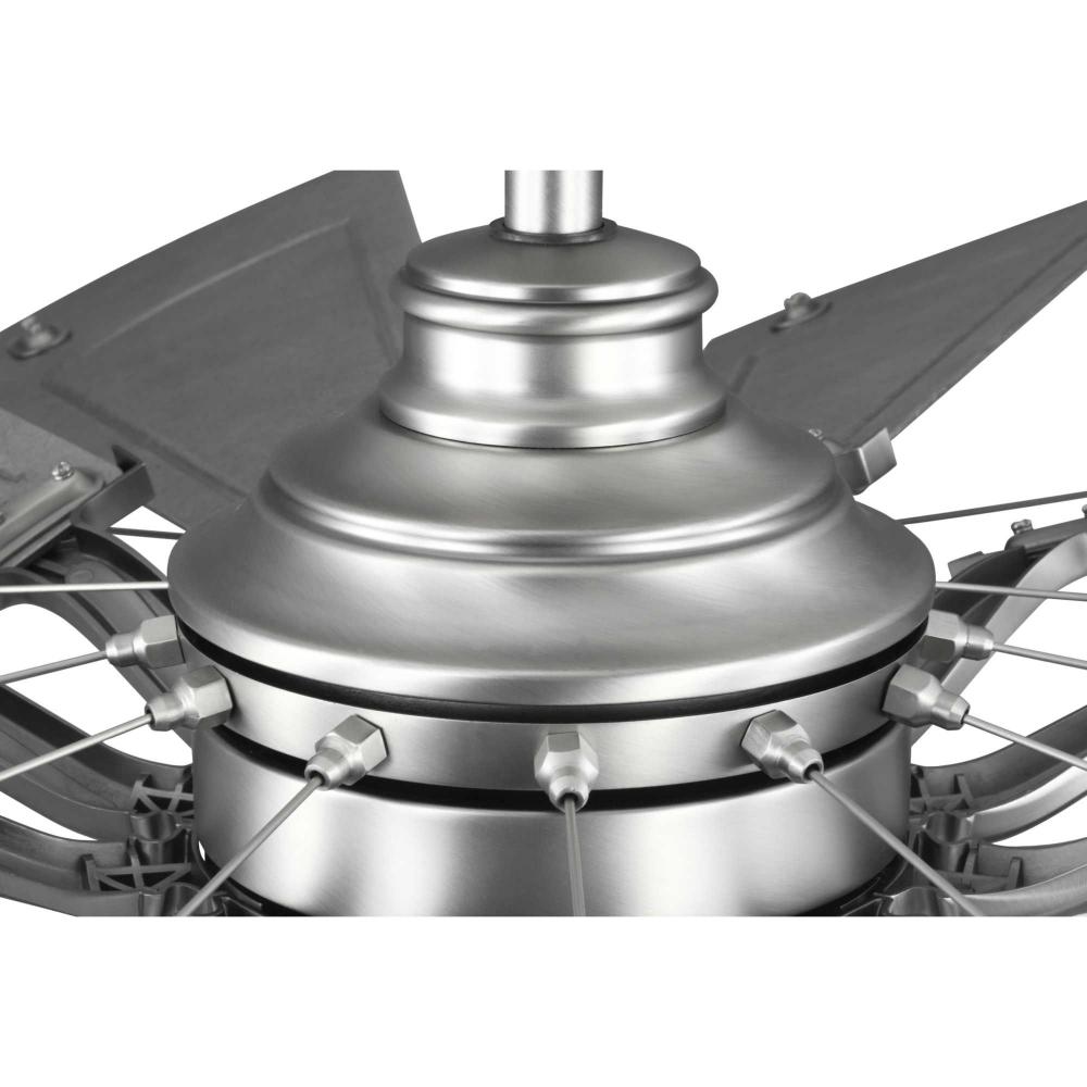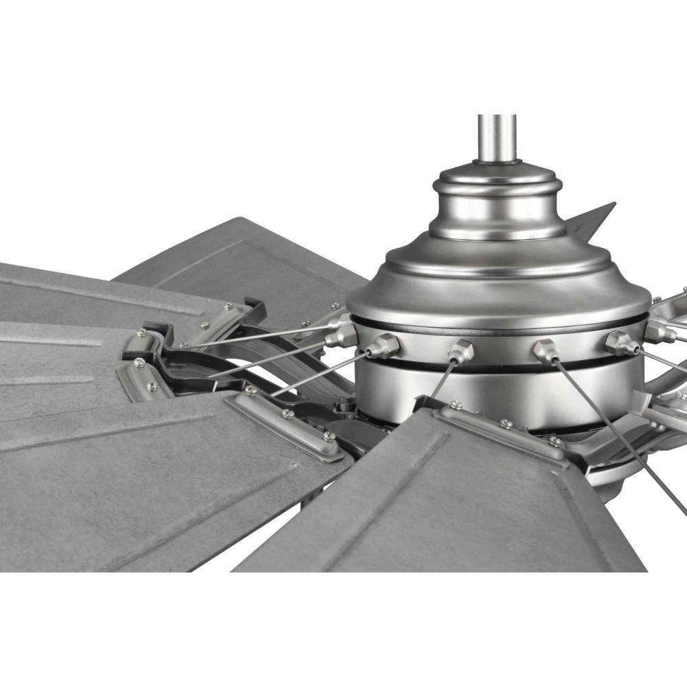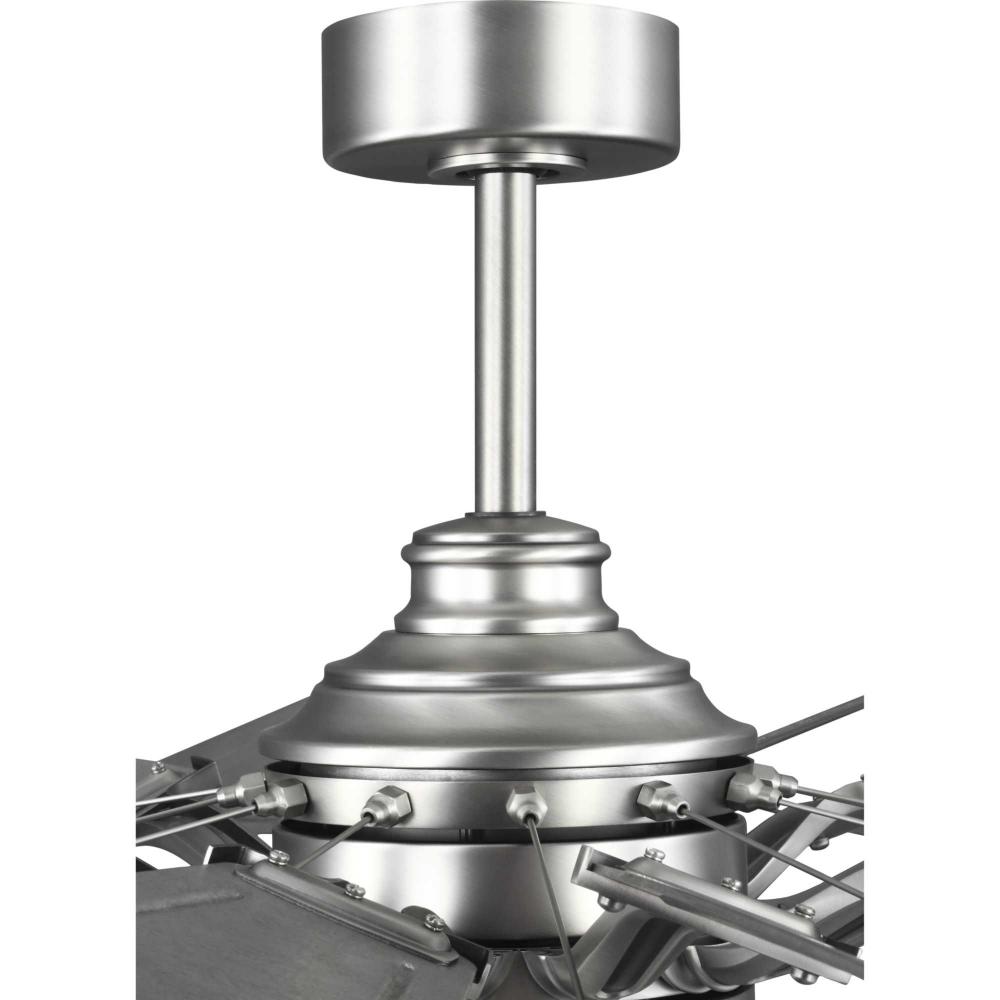 Relax under the refreshing breeze of the Springer Collection 60-Inch Windmill Ceiling Fan. Its large scale and windmill-style blades make it ideal for any great room, bedroom, living room, or bonus room in modern farmhouse, rustic, and coastal-style settings. The antique nickel body is complemented with twelve sweeping blades coated in a Galvanized affect for a rustic flair. Its cULus damp rating makes this lovely fan ideal for use inside or in outdoor covered areas. A 6 speed full-function remote control and wall bracket are included. .