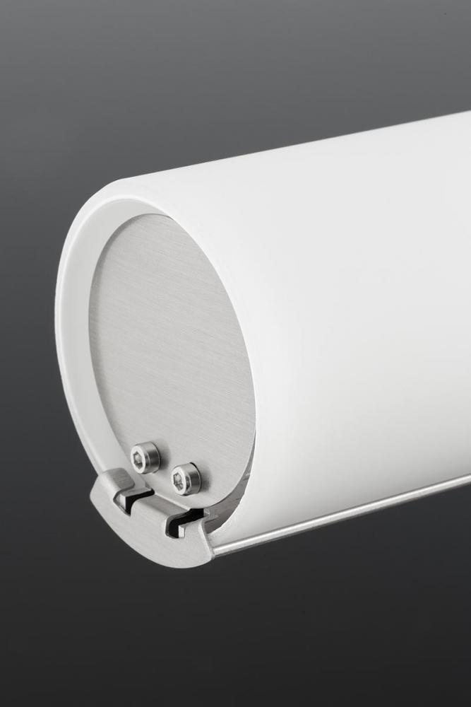 Tubular design pairs with a geometric back plate and mesh accents.;Can be mounted horizontally or vertically.;Circular etched opal glass contains an integrated LED source.;Dimmable to 10% with many ELV dimmers;1,276 lumens 73 lumens/watt;3000K color tempe
