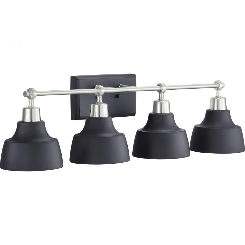 Ideal for a bathroom;Perfect for coastal, farmhouse, and urban industrial style settings;Graphite finish with beautiful brushed nickel accents;Metal reflector-style shades;Mount the light fixture facing up or down;Use 4 medium base bulbs that are sold sepa