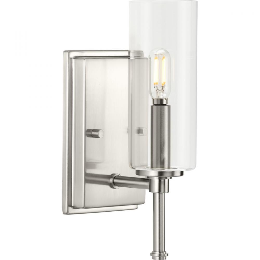 Elara features a slender, chic form with stylized finials that make it an elegant yet unobtrusive light for bathrooms, bedrooms, hallways and foyers;Its classically modern style is perfect for new traditional and transitional interiors;A beautiful brushed