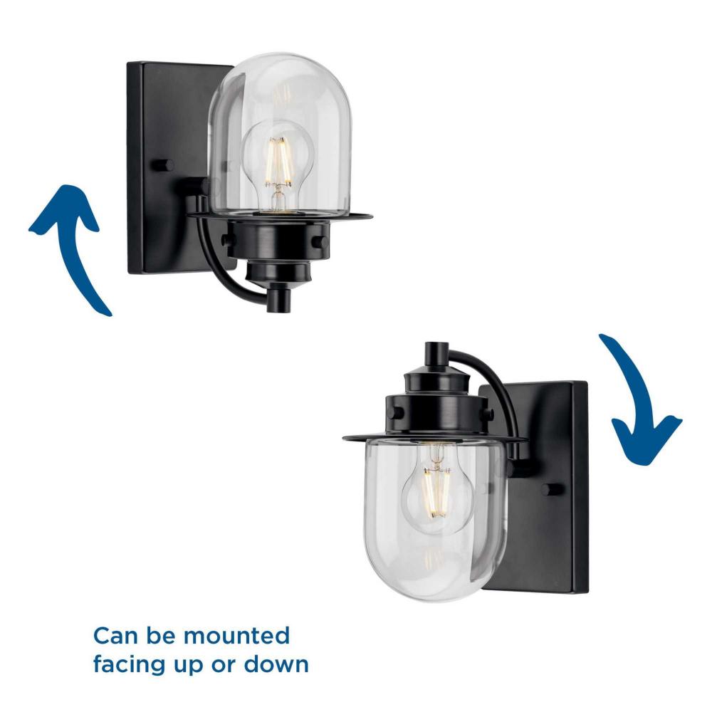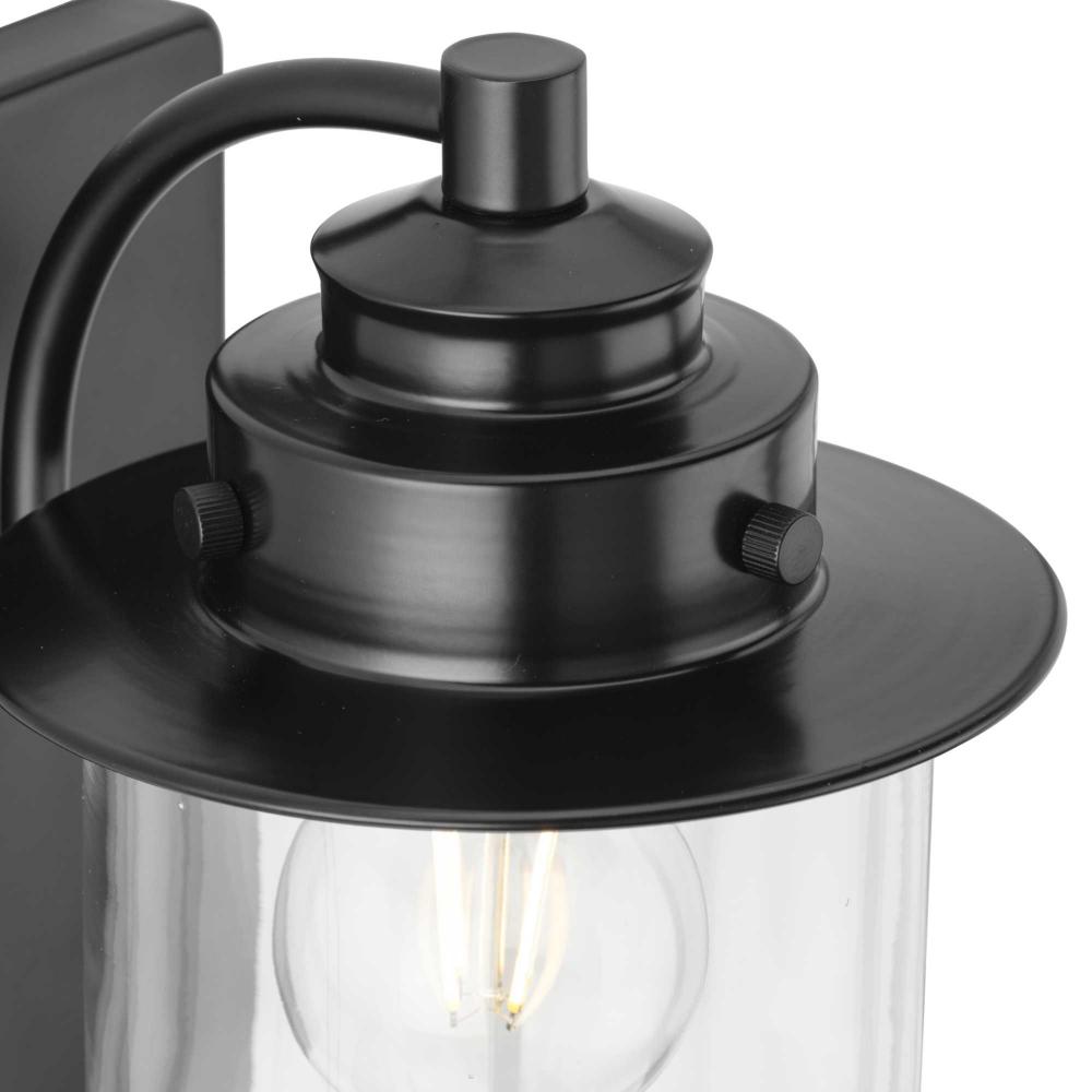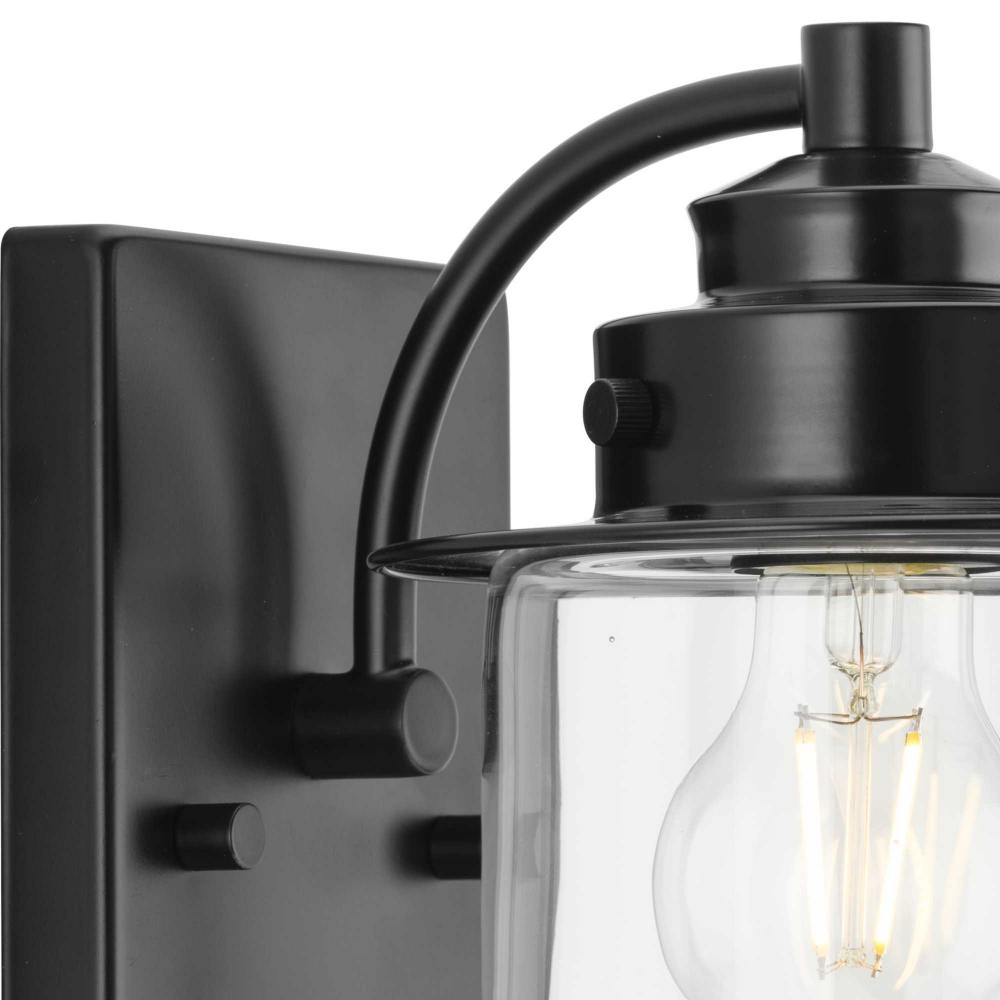 The nostalgic Northlake Collection combines classic design influences with nautical inspiration. Finished in matte black, the rounded diffuser and layered caps are reminiscent of floating buoys and weekends on a mountain lake. A clear glass shade casts a pleasing glow in bathrooms, powder rooms, hallways and living rooms in coastal and transitional settings. This versatile fixture can be mounted up or down, increasing its design flexibility. It is cULus damp rated and has a one-year warranty to guarantee your complete satisfaction. Progress Lighting products offer exceptional quality, reliability, and functionality. .