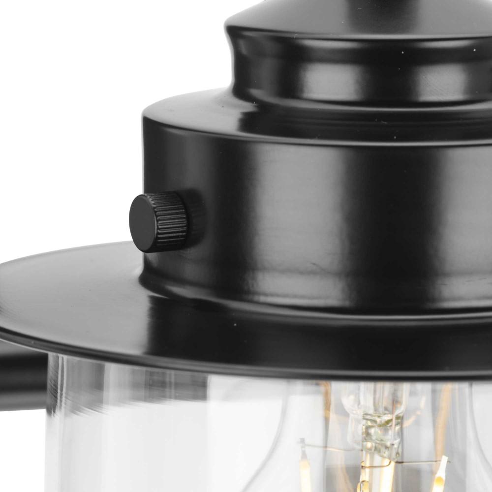 The nostalgic Northlake Collection combines classic design influences with nautical inspiration. Finished in matte black, the rounded diffuser and layered caps are reminiscent of floating buoys and weekends on a mountain lake. Clear glass shades cast a pleasing glow in bathrooms and powder rooms in coastal and transitional settings. This versatile fixture can be mounted up or down, increasing its design flexibility. It is cULus damp rated and has a one-year warranty to guarantee your complete satisfaction. Progress Lighting products offer exceptional quality, reliability, and functionality. .