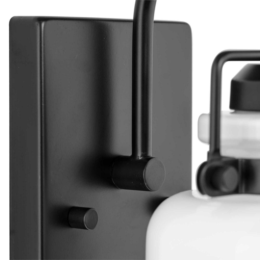 Distinctive mechanical details establish a nostalgic flair in the elegant Fessler collection. Opal glass shades deliver comfortable diffuse illumination to bathrooms, powder rooms, hallways and living rooms in transitional and farmhouse settings. The decorative frame is coated in a crisp matte black and features authentically crafted hardware elements that complements the curved opal shades. This versatile fixture can be mounted up or down, increasing its design flexibility. It is cULus damp location listed, with a one-year warranty to guarantee your complete satisfaction. Progress Lighting products are designed for exceptional quality, reliability, and functionality. .