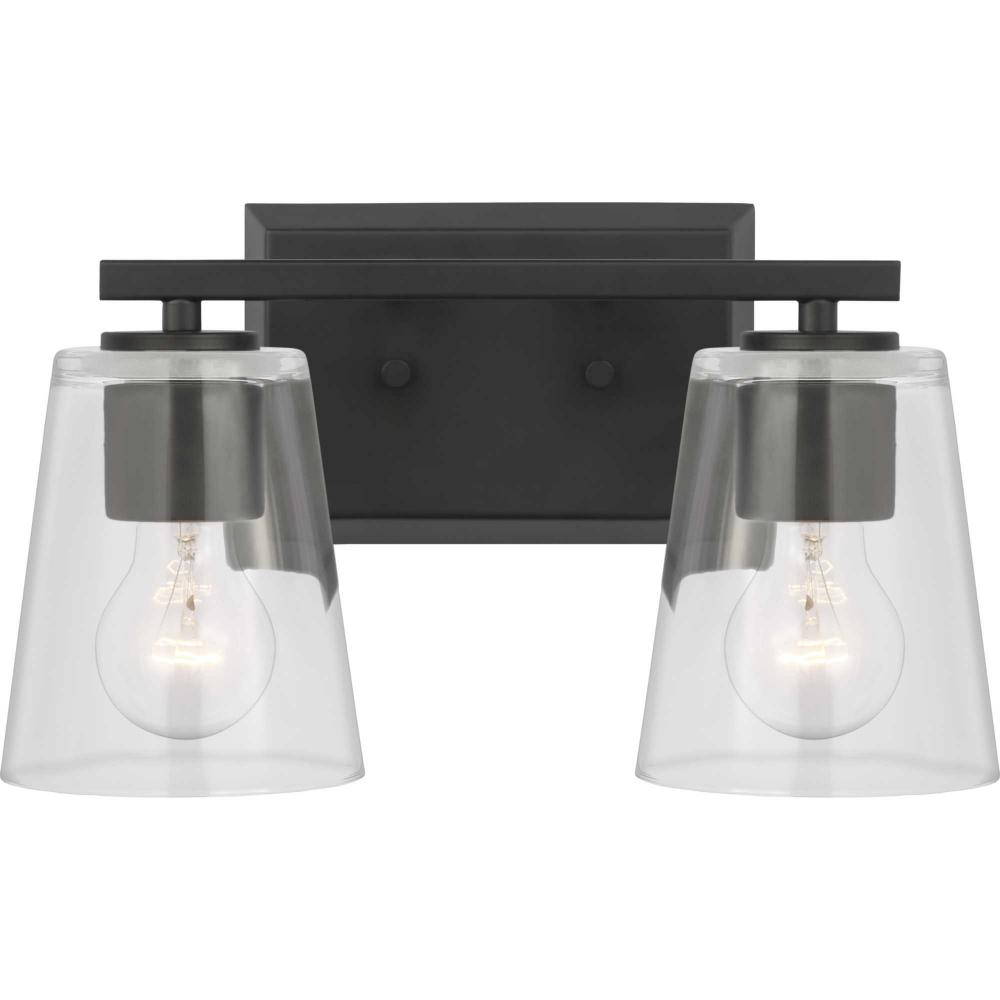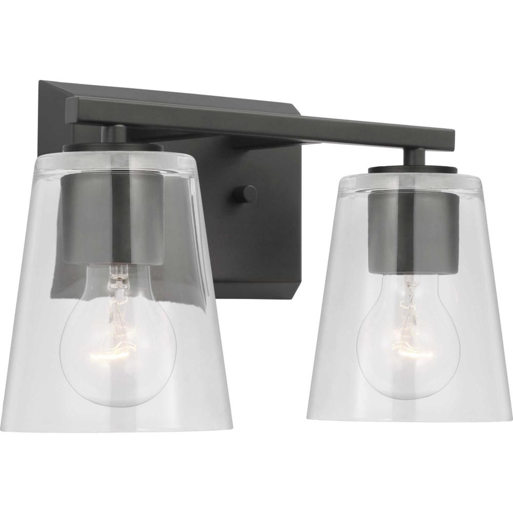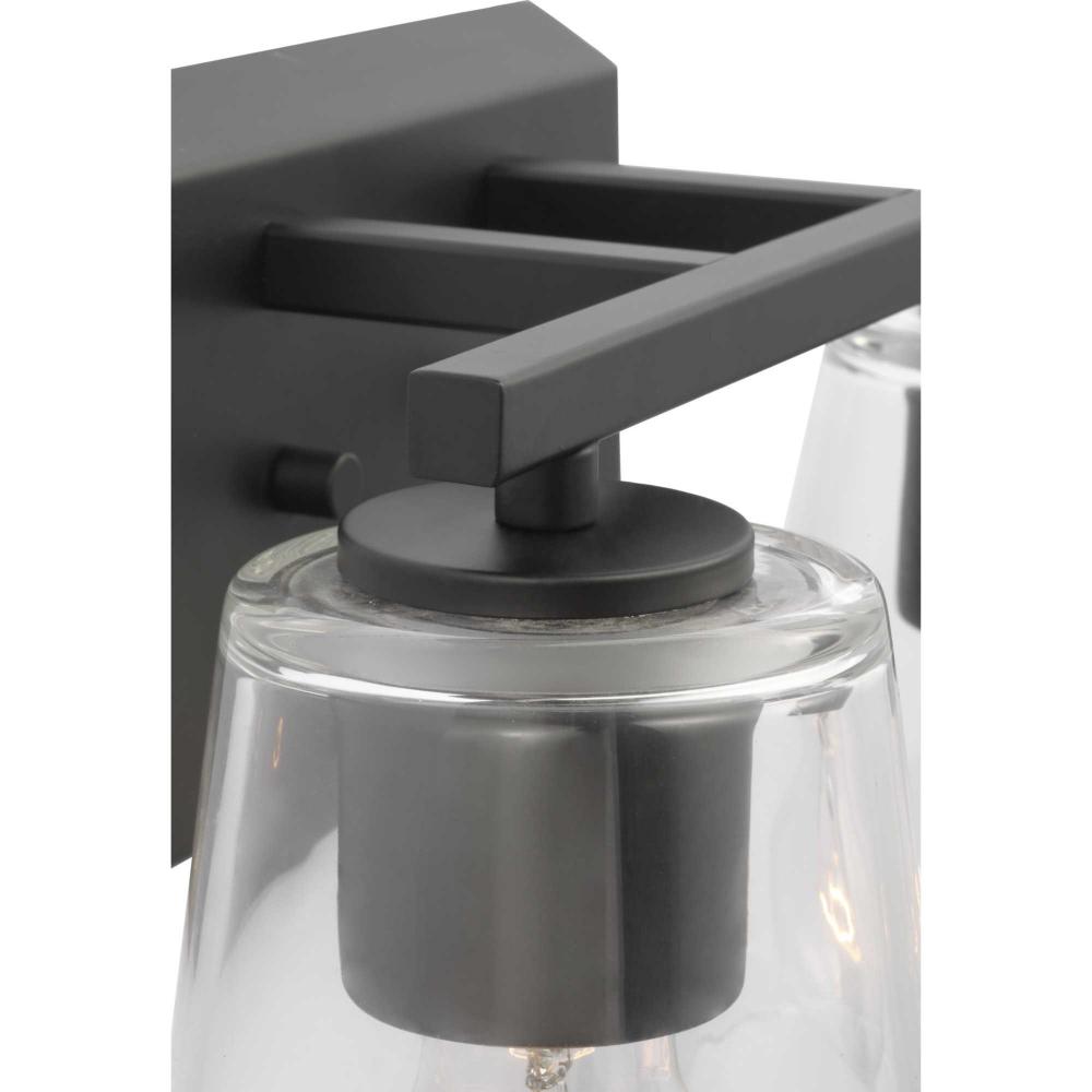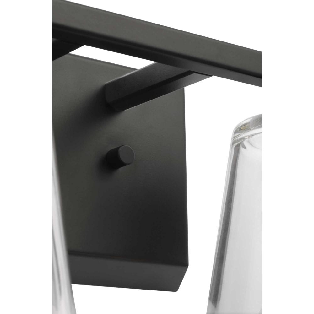 Elegantly extended, the Vertex Collection is composed of angular forms finished in crisp matte black to create a bold design that perfectly complements modern interiors. Glass shades delivers bright illumination to bathrooms and powder rooms in contemporary settings. This versatile fixture can be mounted up or down, increasing its design flexibility. It is cULus damp rated and has a one-year warranty to guarantee your complete satisfaction. Progress Lighting products offer exceptional quality, reliability, and functionality. .