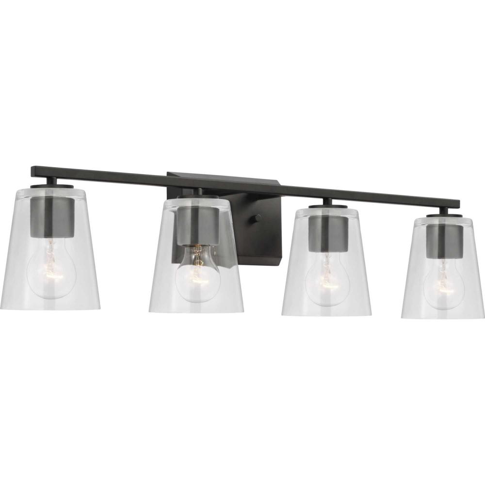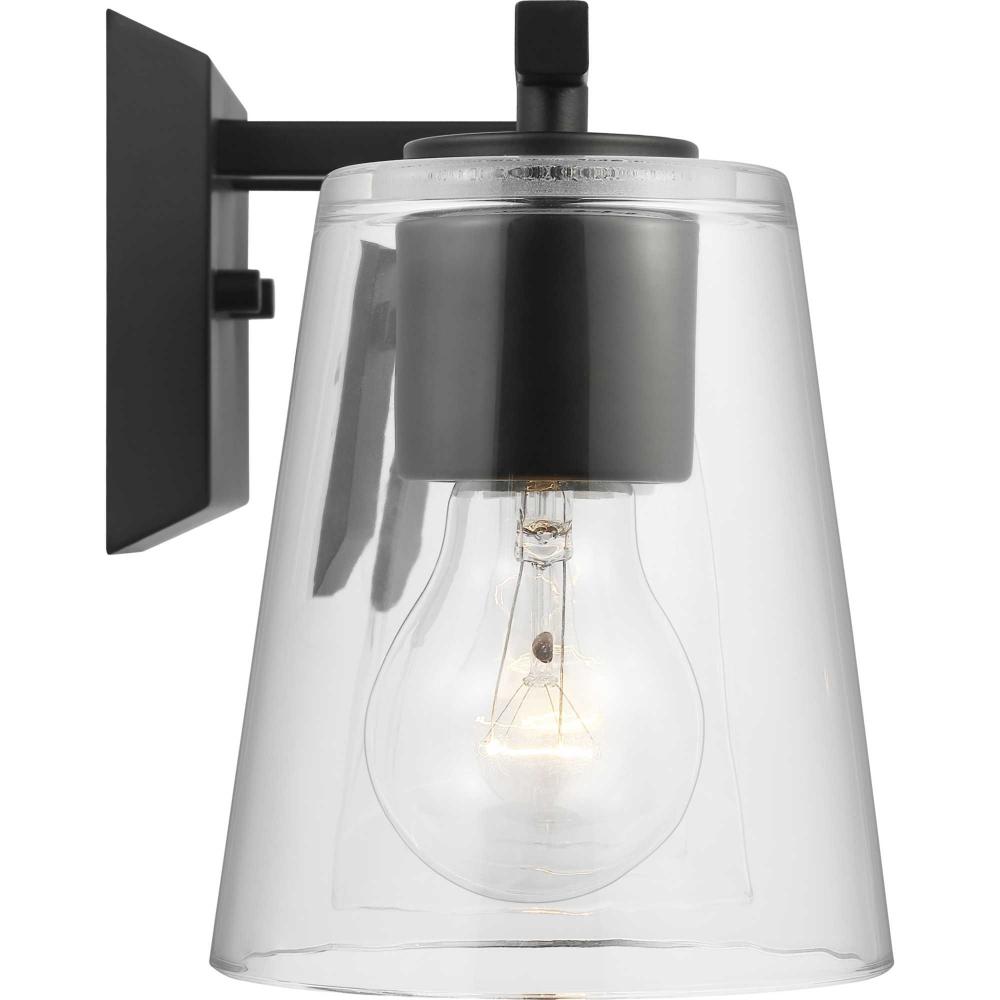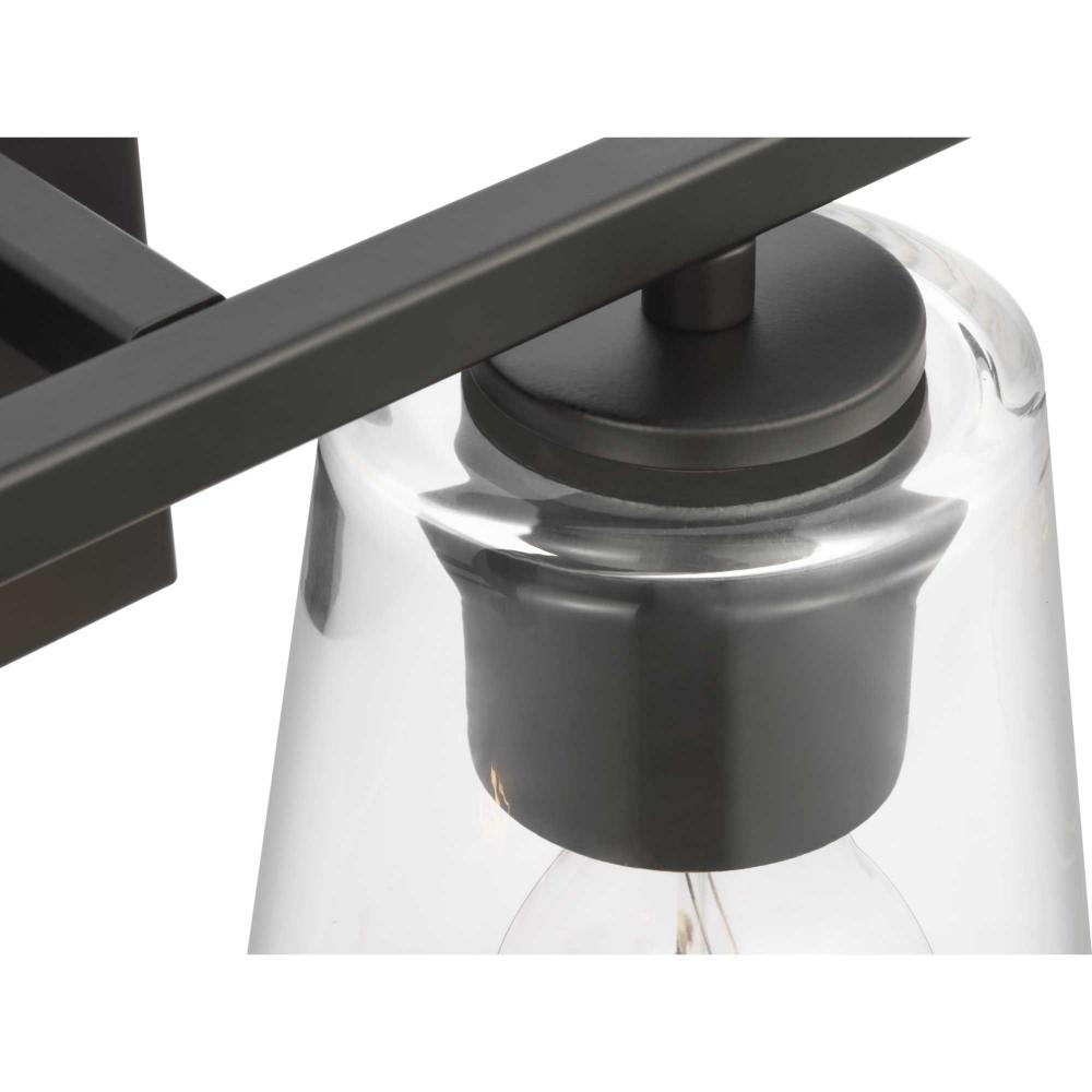 Elegantly extended, the Vertex Collection is composed of angular forms finished in crisp matte black to create a bold design that perfectly complements modern interiors. Glass shades delivers bright illumination to bathrooms and powder rooms in contemporary settings. This versatile fixture can be mounted up or down, increasing its design flexibility. It is cULus damp rated and has a one-year warranty to guarantee your complete satisfaction. Progress Lighting products offer exceptional quality, reliability, and functionality. .