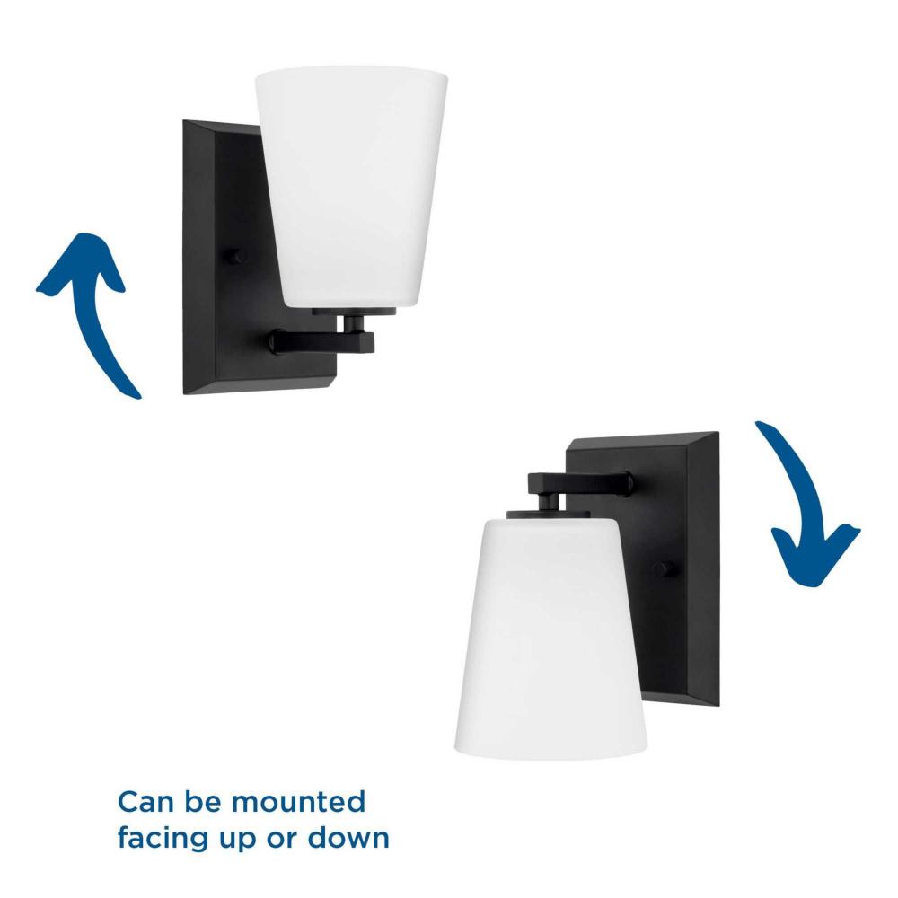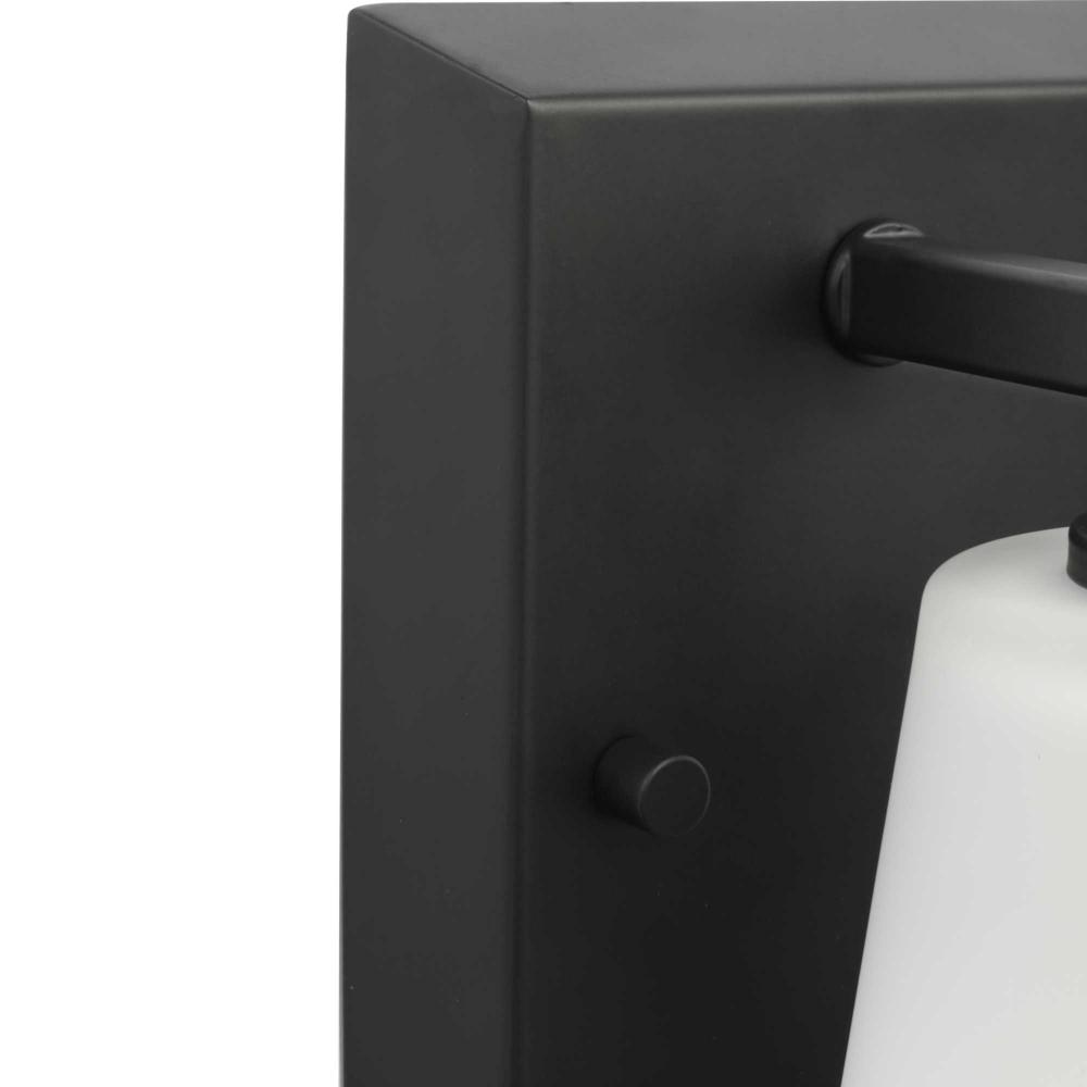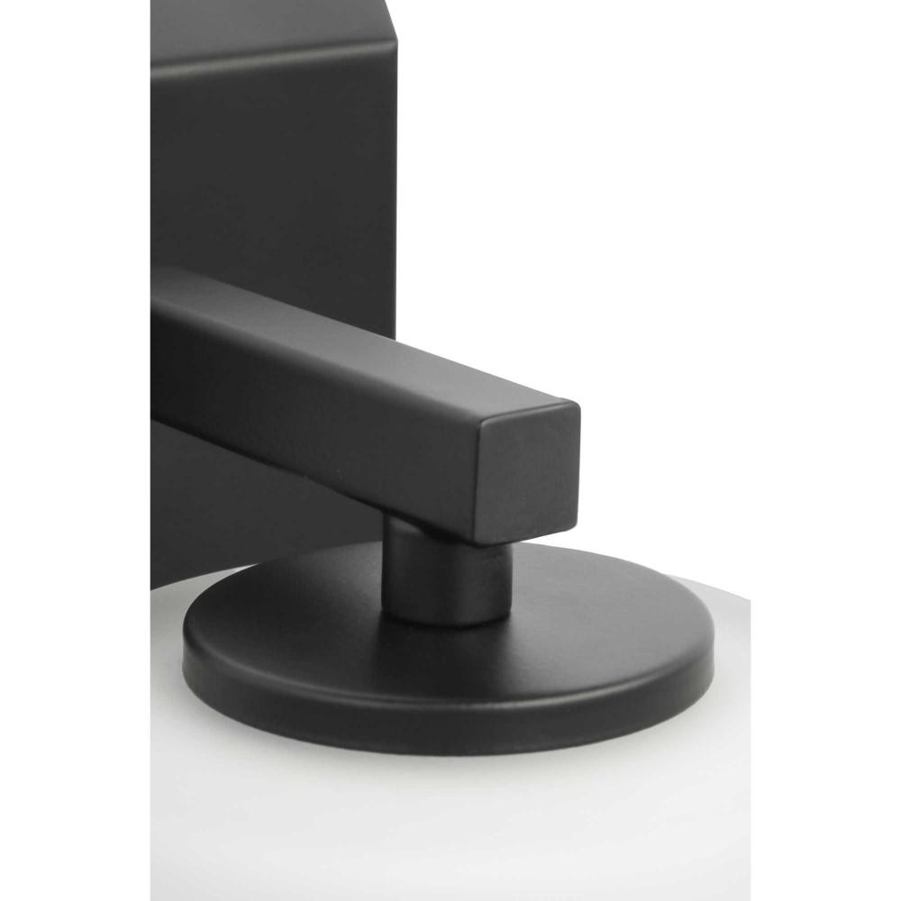 Elegantly extended, the Vertex Collection is composed of angular forms finished in crisp matte black to create a bold design that perfectly complements modern interiors. Glass shades delivers bright illumination to bathrooms and powder rooms in contemporary settings. This versatile fixture can be mounted up or down, increasing its design flexibility. It is cULus damp rated and has a one-year warranty to guarantee your complete satisfaction. Progress Lighting products offer exceptional quality, reliability, and functionality. .