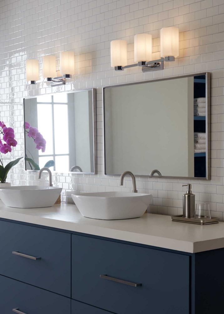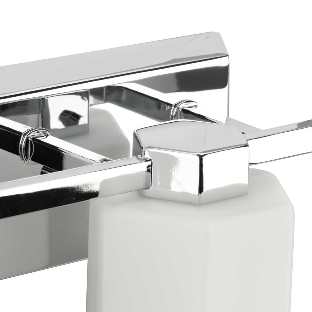 The Estrada Three-Light Vanity Light features a hexagonal motif, one of the most beautiful patterns that occurs frequently in nature. This classic shape is experiencing a revival in popularity as it is both timeless and modern at the same time. Faceted opal glass shades are fitted atop matching metal bases finished in Polished Chrome.