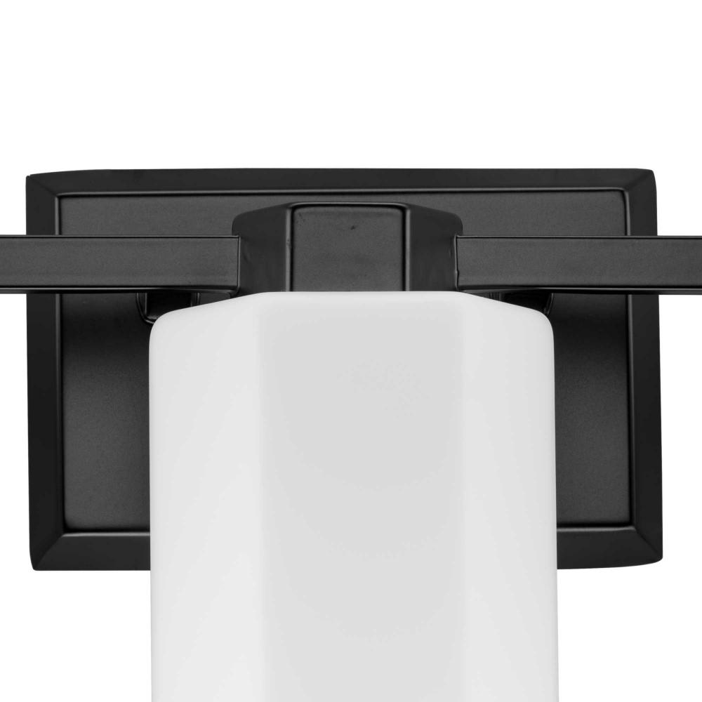 The Estrada Three-Light Vanity Light features a hexagonal motif, one of the most beautiful patterns that occurs frequently in nature. This classic shape is experiencing a revival in popularity as it is both timeless and modern at the same time. Faceted opal glass shades are fitted atop matching metal bases finished in crisp Matte Black.
