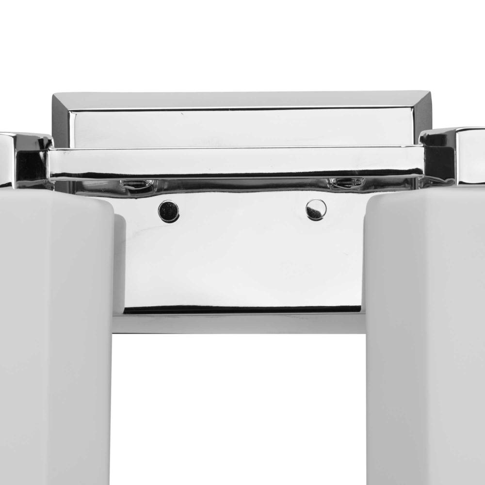 The Estrada Four-Light Vanity Light features a hexagonal motif, one of the most beautiful patterns that occurs frequently in nature. This classic shape is experiencing a revival in popularity as it is both timeless and modern at the same time. Faceted opal glass shades are fitted atop matching metal bases finished in Polished Chrome.
