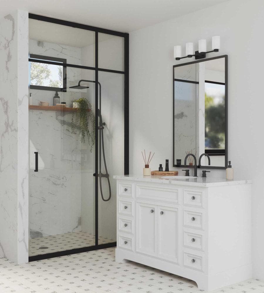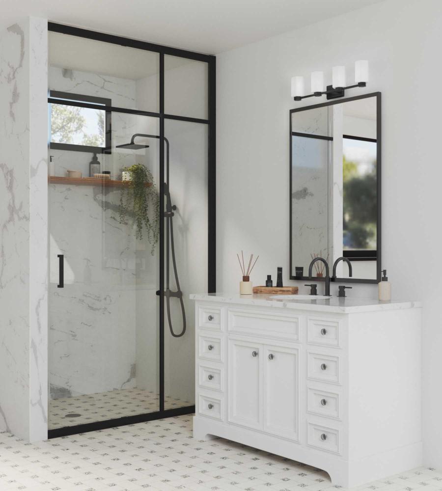 The fixture is coated with a crisp matte black finish, fitting beautifully into contemporary bathrooms