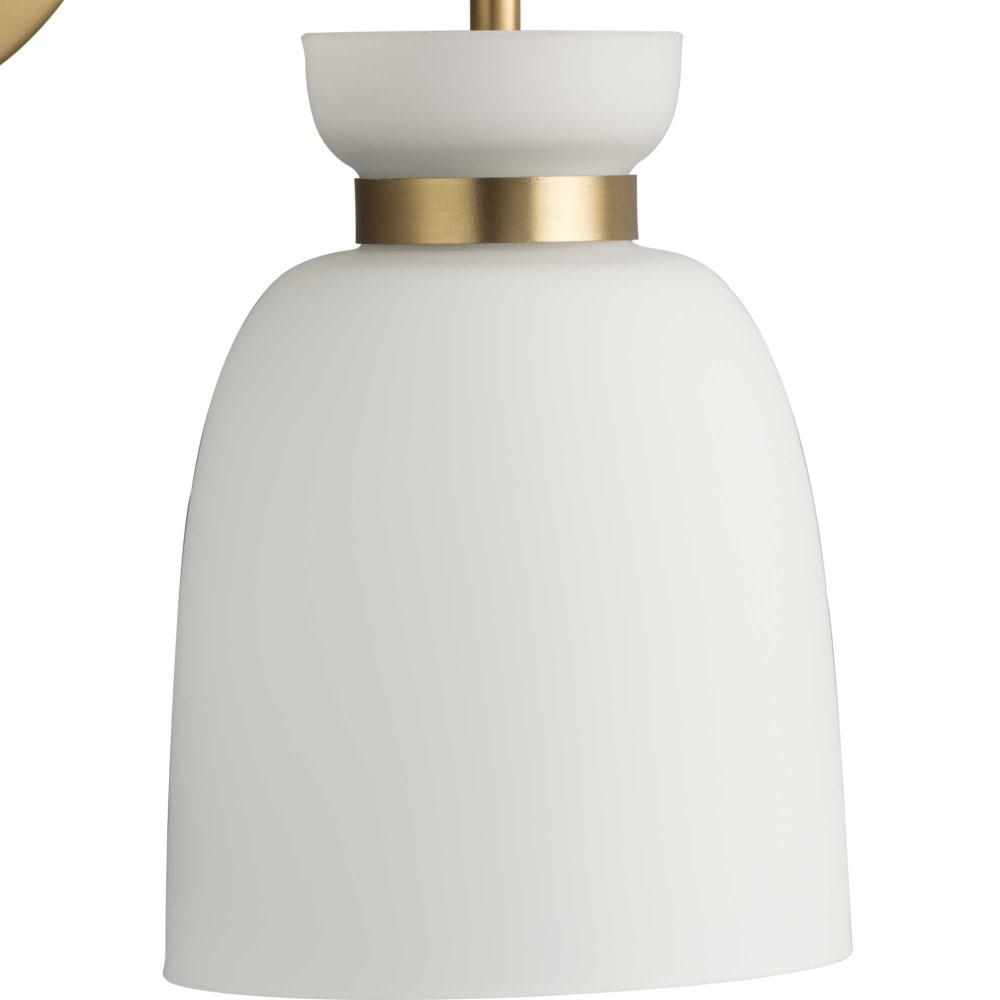 The fixture's slender lines are finished in an a gorgeous brushed gold