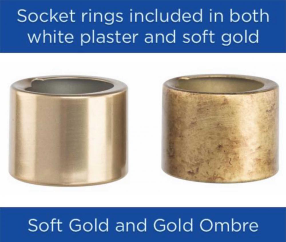 The light's artful design is hand painted in gold ombre accented by soft gold