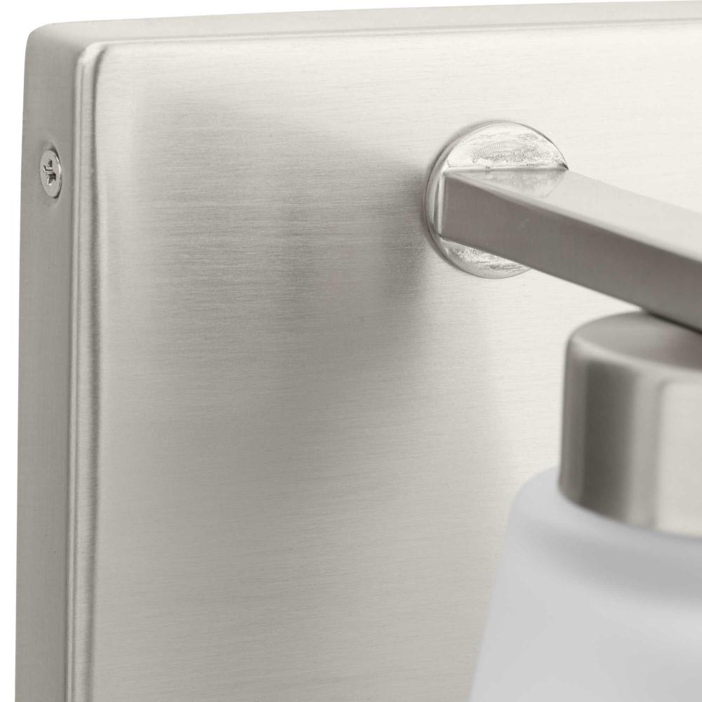 A Brushed Nickel finish emphasizes the fixture's lively design