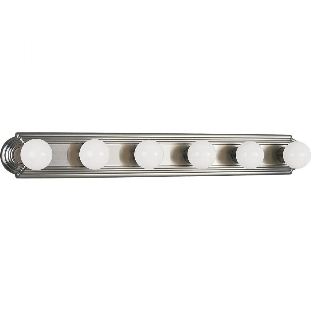 Ideal for a bathroom;Perfect for traditional style settings;Beautiful brushed nickel finish;Hollywood-style lighting strip;Includes installation instructions and mounting hardware;Use 6 medium base bulbs that are sold separately (60 W max - LED/CFL/incande