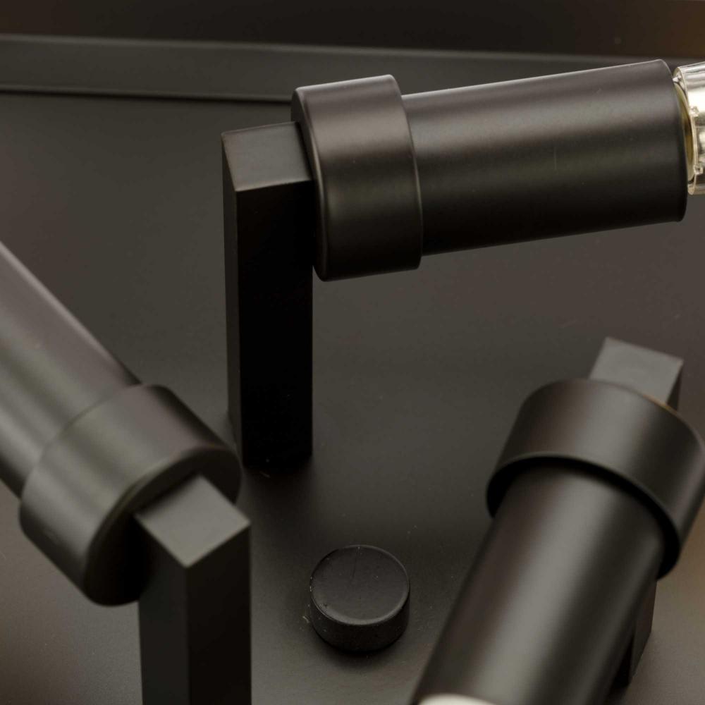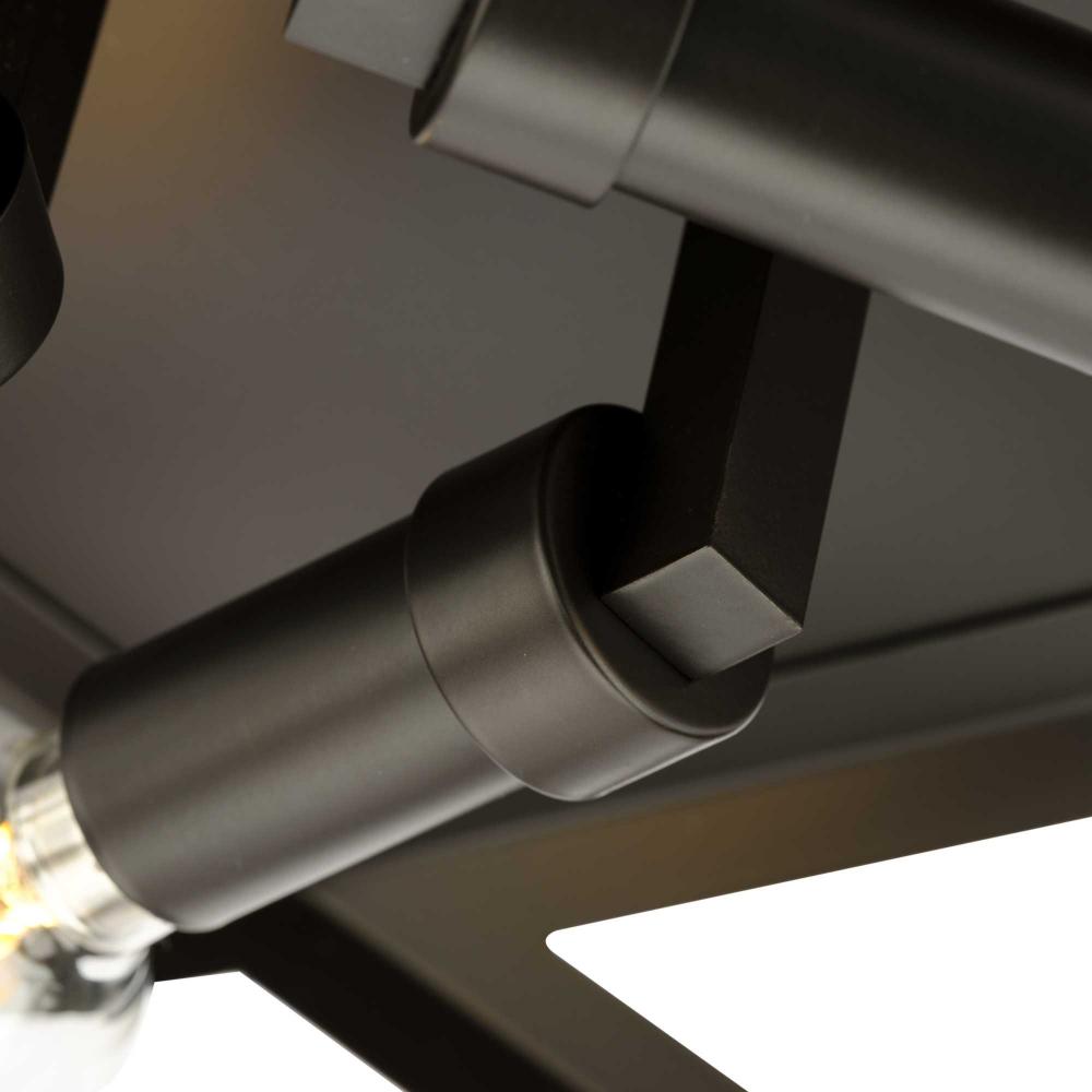 A round mounting plate holds the geometrical steel arrangement, allowing the fixture to shine brightly from above