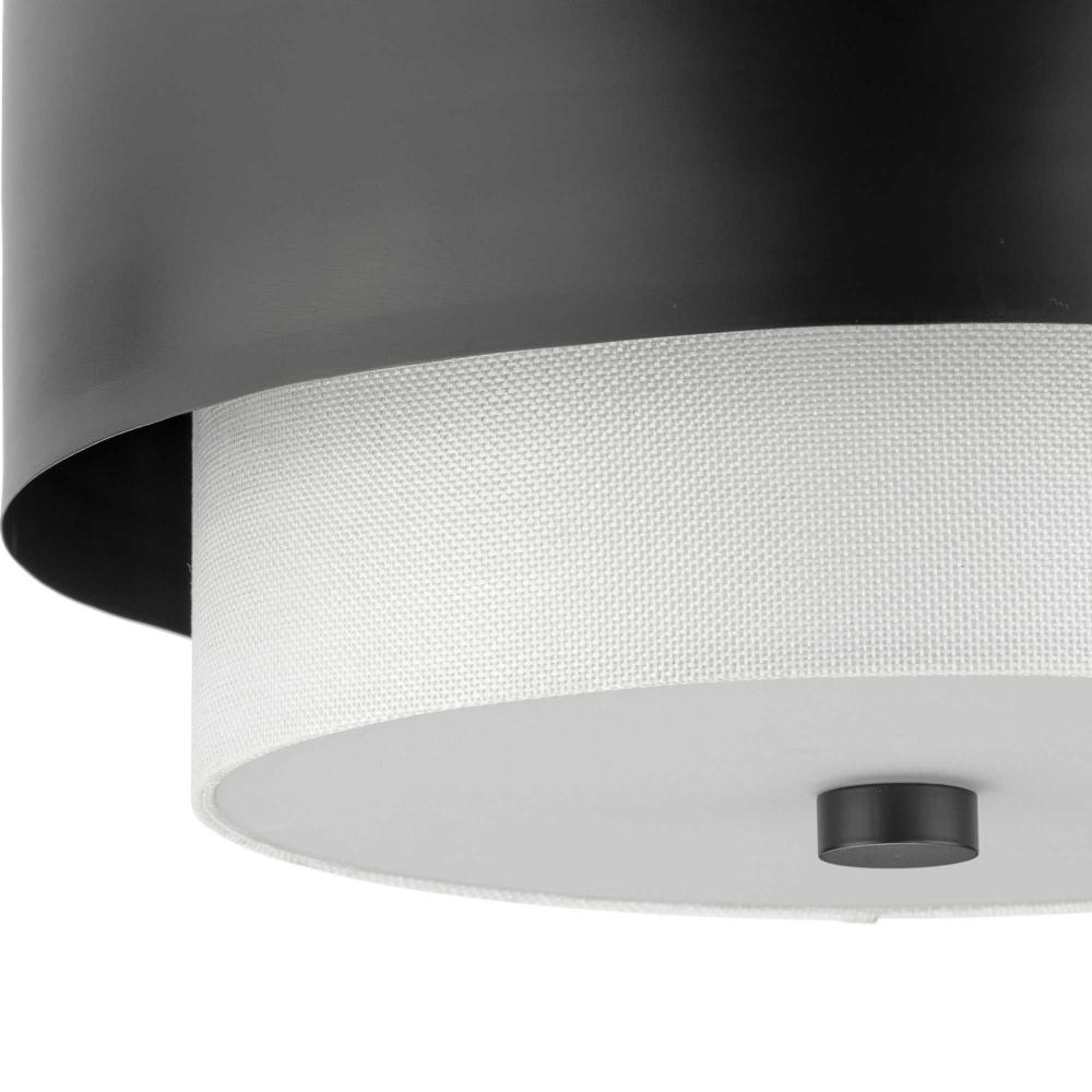 The Silva Collection uses a dramatic contrast of finish and material to present a captivating design. A white linen shade encompassed by a stunning metallic drum coated in a crisp matte black finish establishes a clean, modern, uplifting statement. This fixture is part of the Progress Lighting Design Series, a lighting collection offering fashionable styles and affordable luxury lighting for the home.
