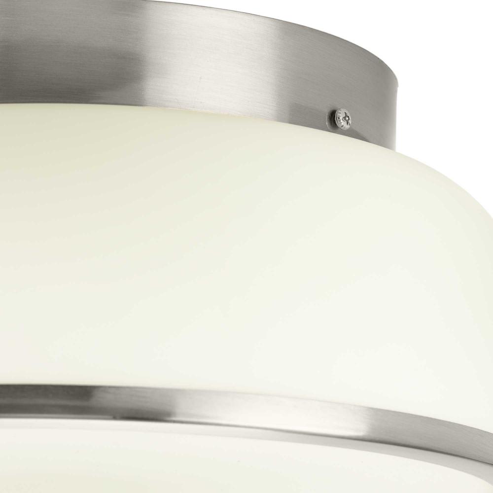 The flush mount features a subtle brushed nickel finish