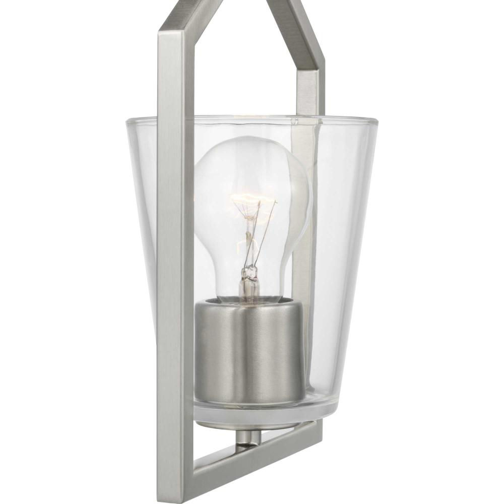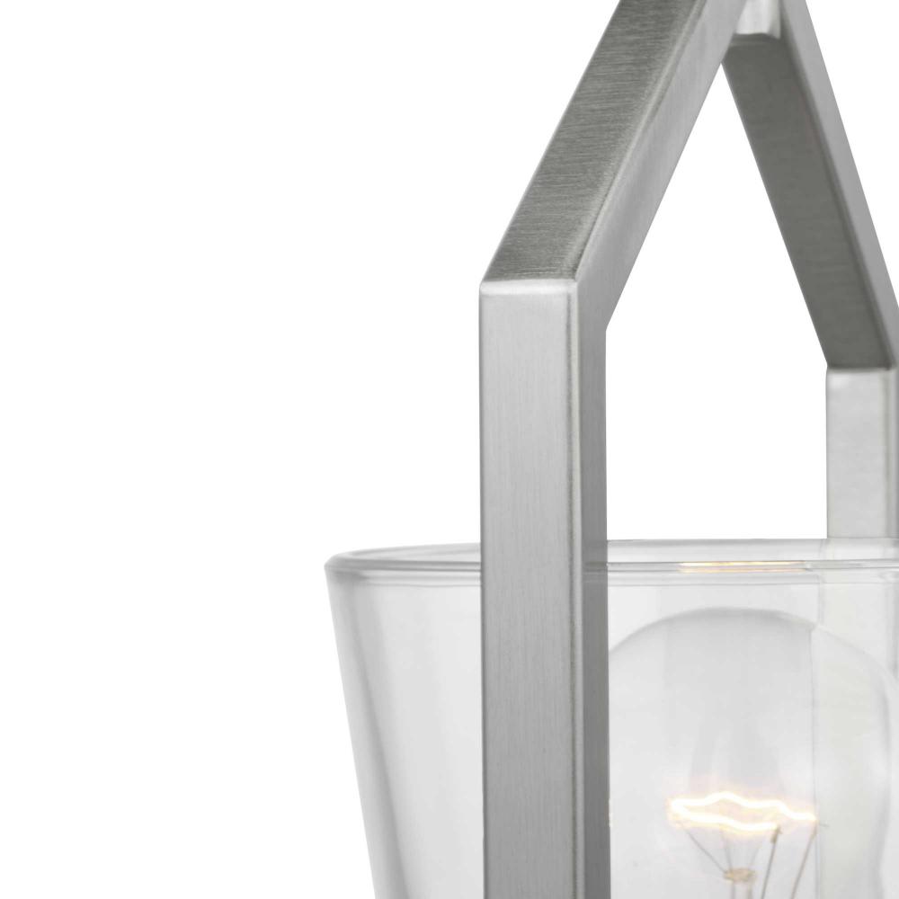 A lovely brushed nickel frame define the fixture's distinct, angular silhouette