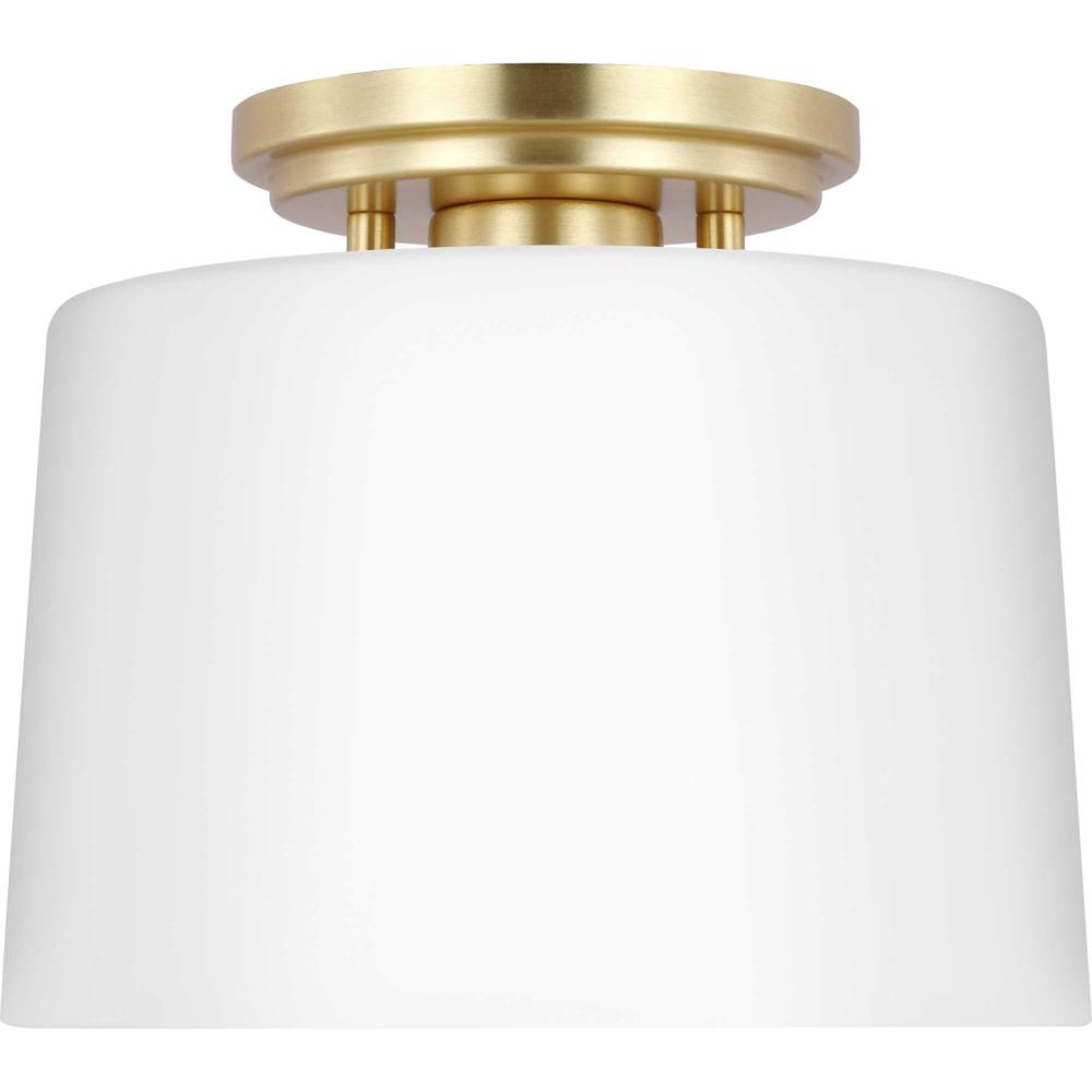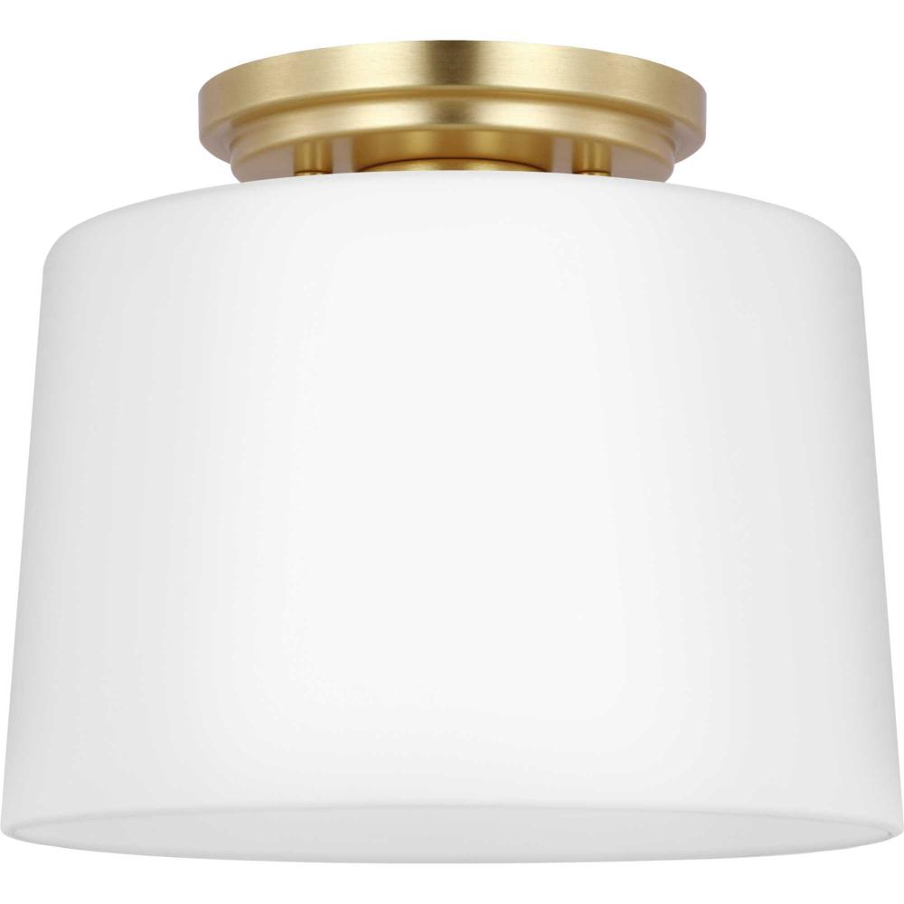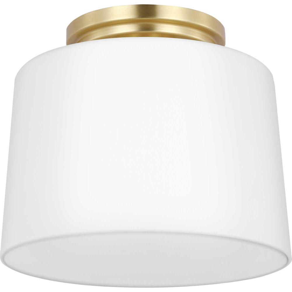 Fundamentally modern but with a traditional twist, the Adley flush mount light features a sleek light base and circular ceiling plate coated in a lustrous satin brass finish. The light source is surrounded by an etched opal glass shade for gorgeous illumination. This ceiling light will find a home in any new traditional or transitional style setting.