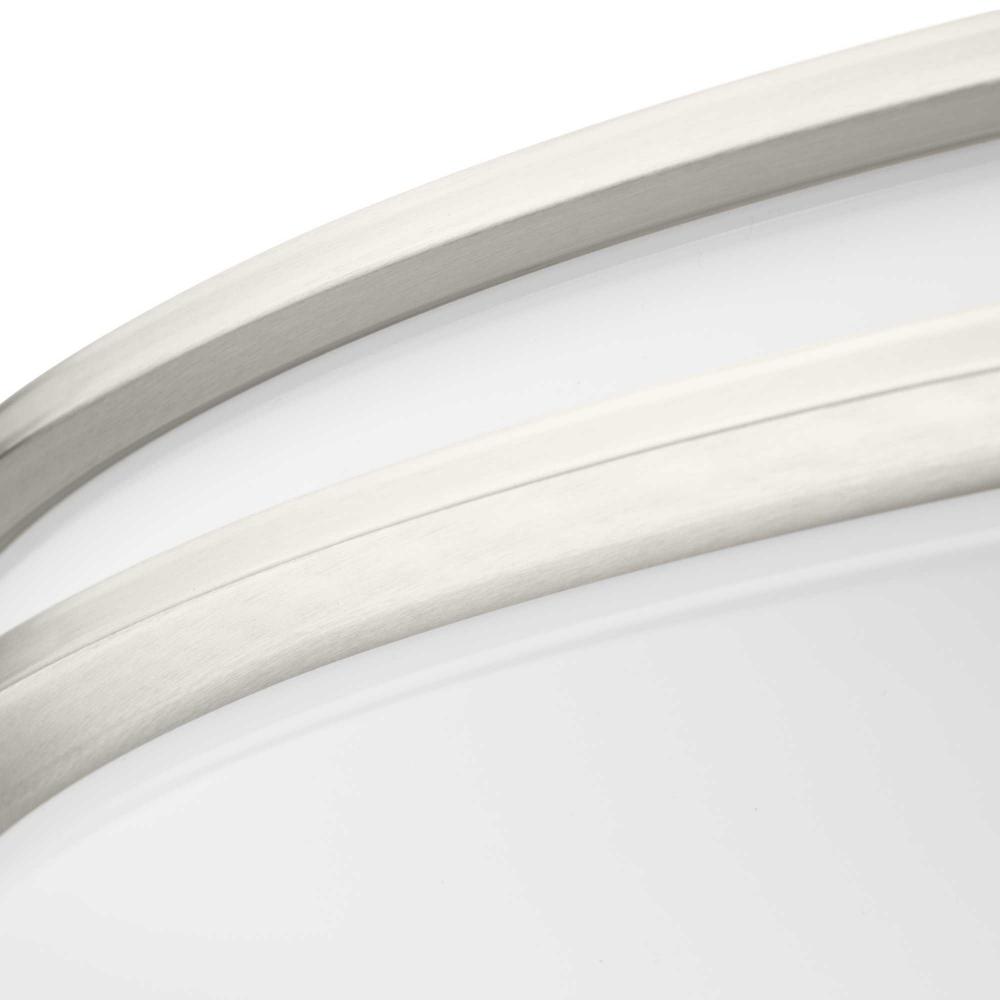 The Abide Integrated LED Extra-Large Round Flush Mount Light is precision crafted for contemporary settings. Sleek Brushed Nickel circular bands hold a white acrylic diffuser concealing its 5 CCT selectable (2700K, 3000K, 3500K, 4000K and 5000K) dimmable LED light source.