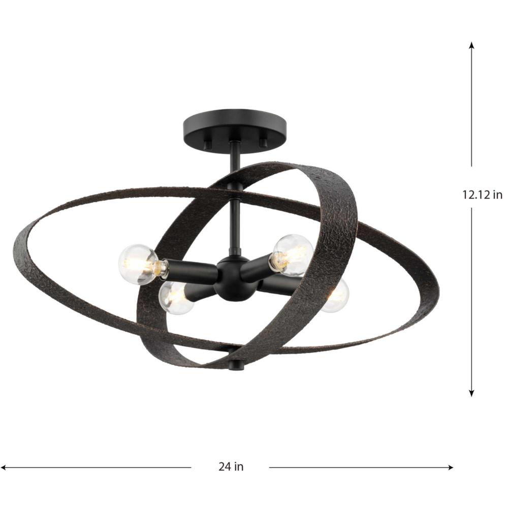 A distinctive foundry texture gives the Allegheny Collection an authentically crafted style. Its artisanal frame is finished in Iron Copper and surrounds a Matte Black light cluster, casting soft illumination throughout the room. This fixture is part of the Progress Lighting Design Series, a lighting collection offering fashionable styles and luxury lighting for the home.
