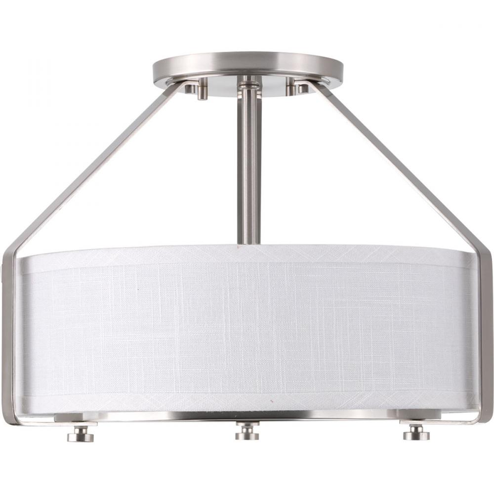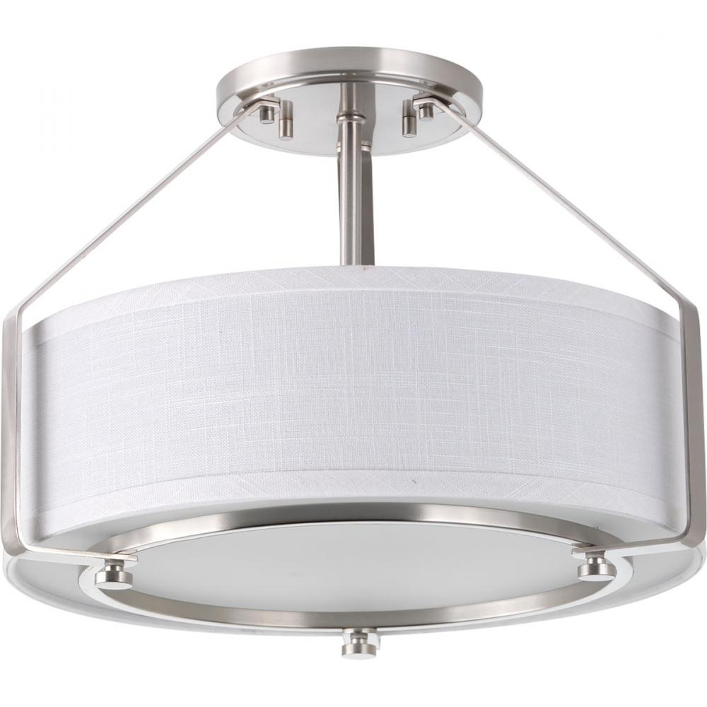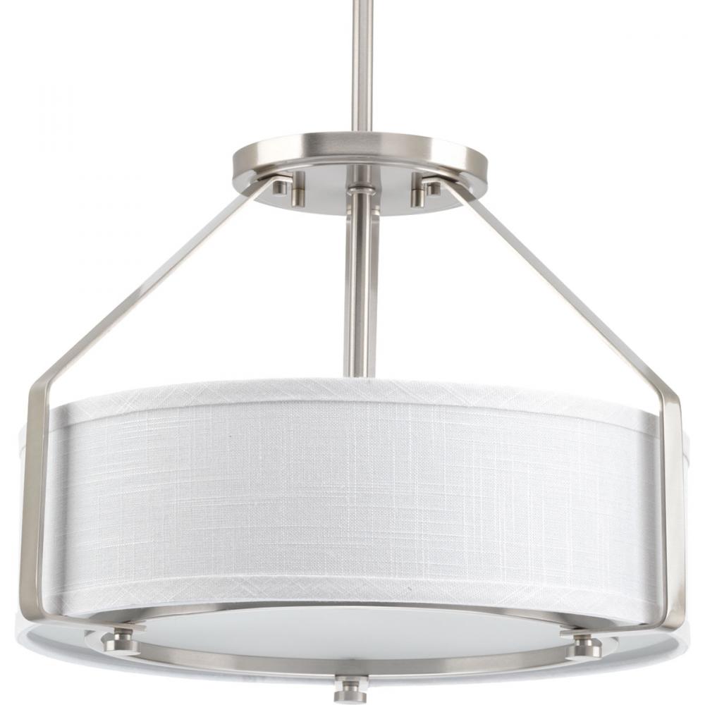 A sleek metal frame supports a low-slung shade.;The frame's proportion to the white linen drum shade evokes a perfect ratio for lighting.;Polished glass diffuser that offers an elegant appeal and is easier to clean.;Offers both fashion and function wit