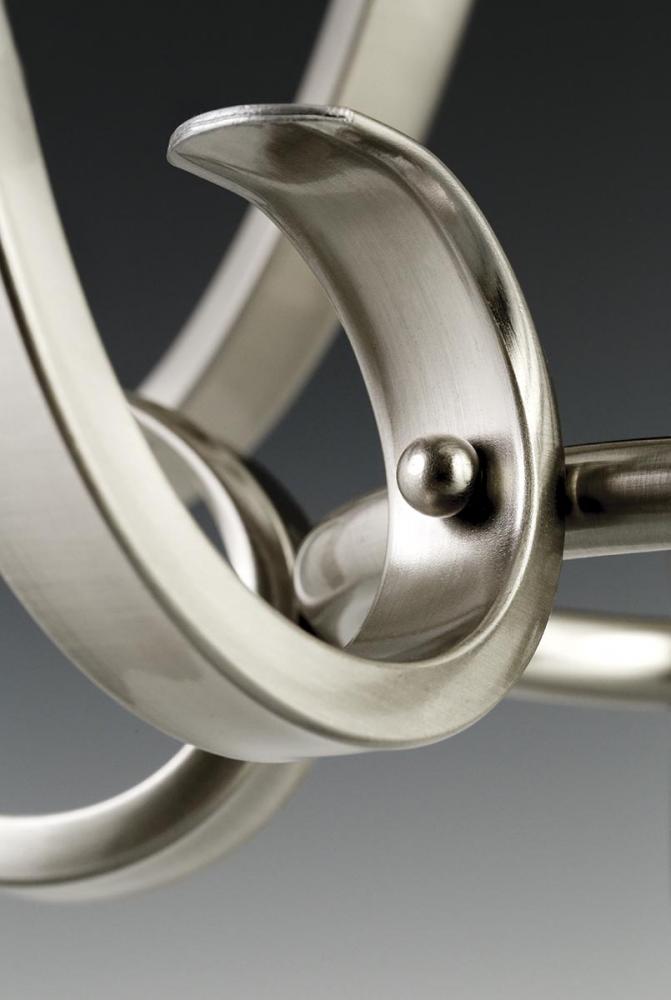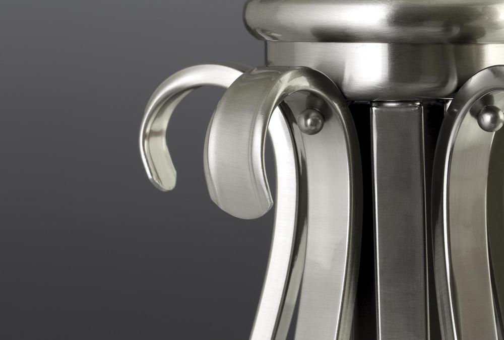 Forged Bronze finish.;Tea-stained glass bowl.;Distinctive ebbing and flowing of scrolls and arms.