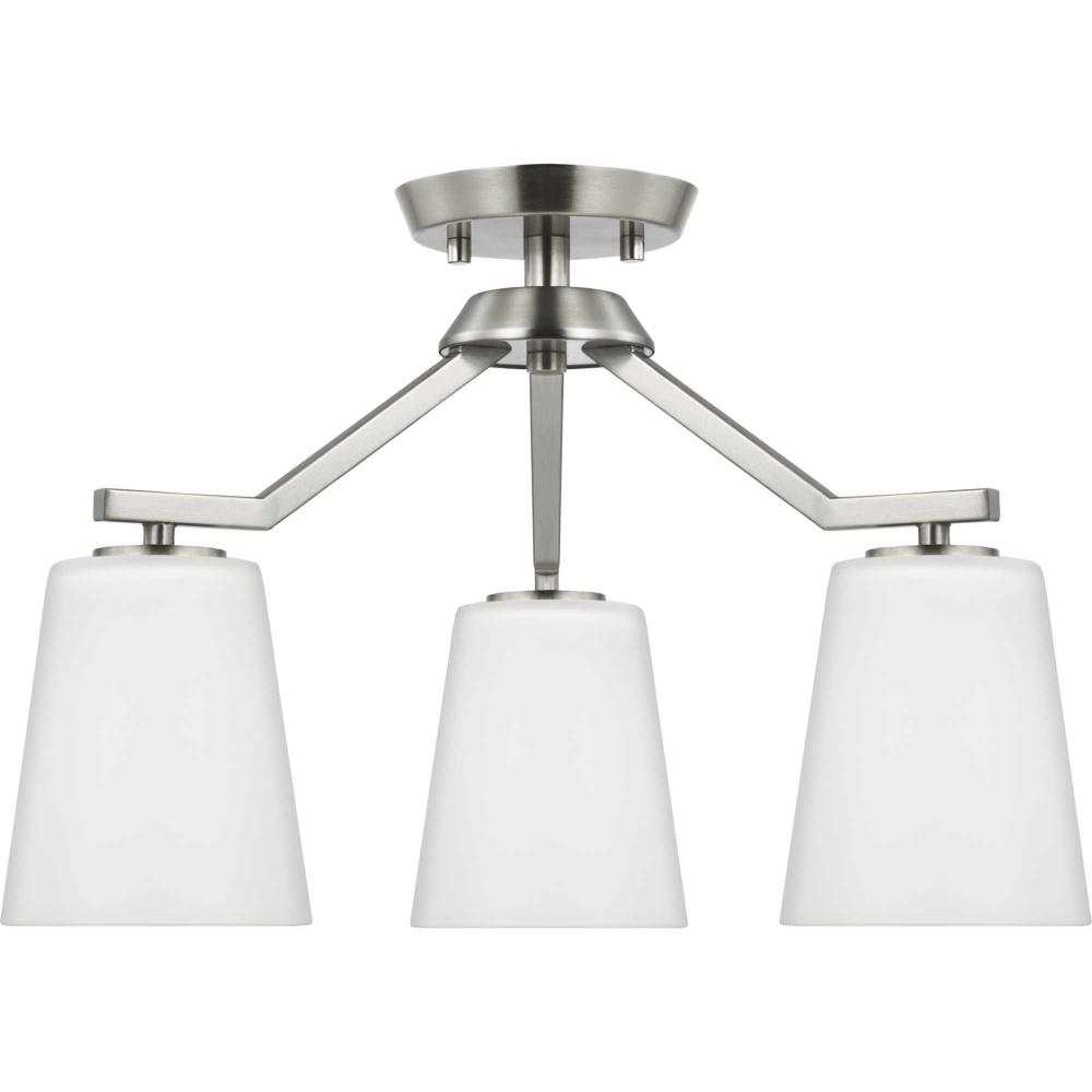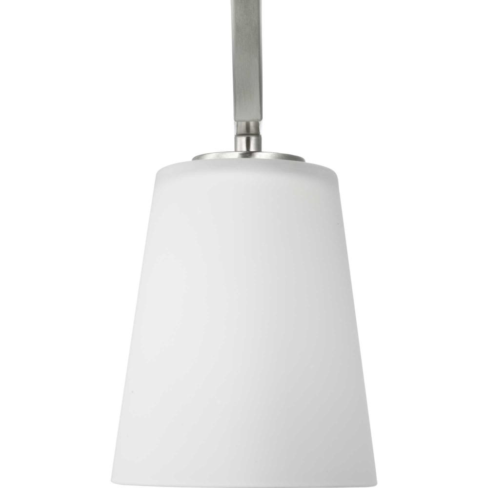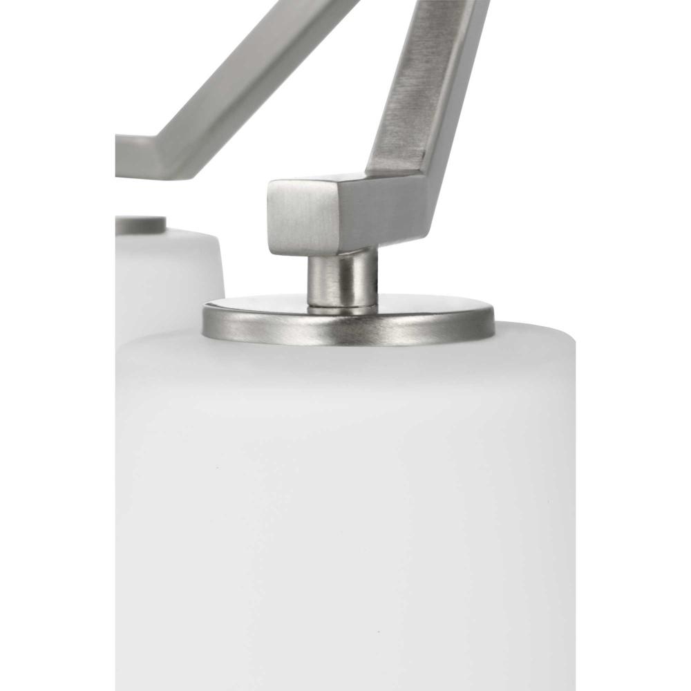 A lovely brushed nickel frame define the fixture's distinct, angular silhouette