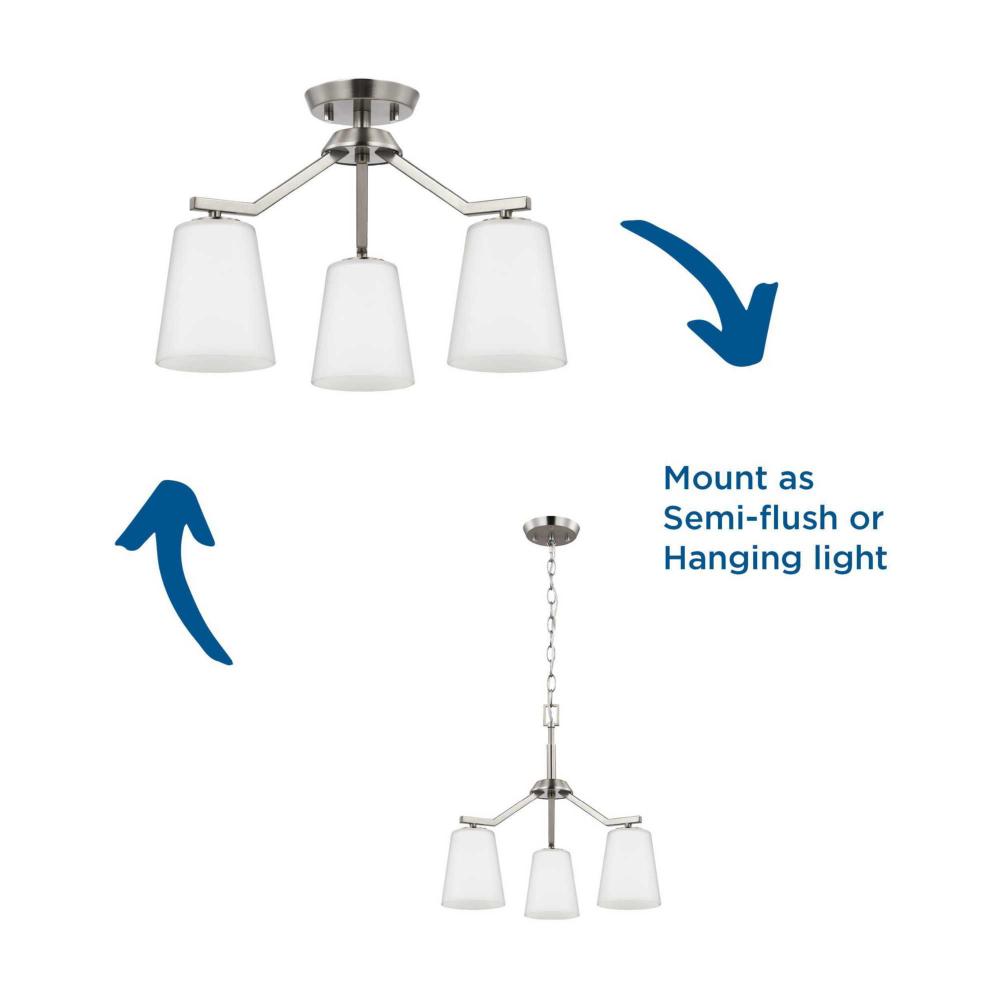 This versatile fixture can be converted to a chandelier using the included 48 inches of chain or installed as a semi-flush mount fixture.
