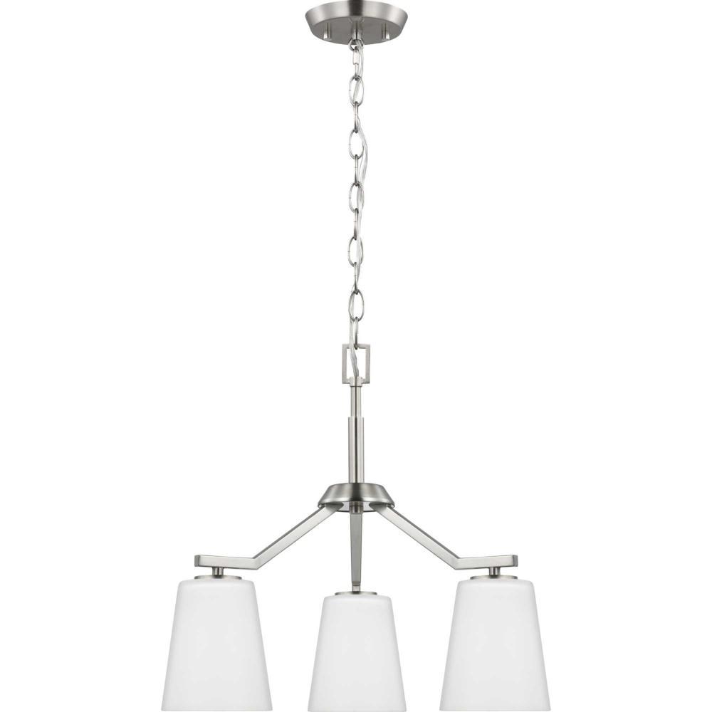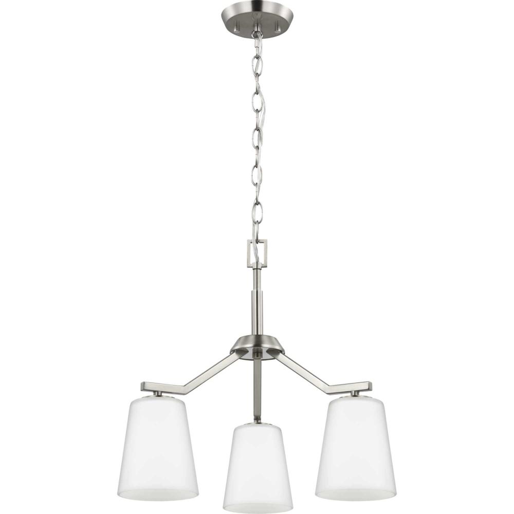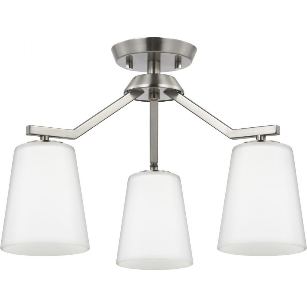 Elegantly extended, the Vertex convertible chandelier is composed of angular forms to create a bold design that perfectly complements halls, foyers and breakfast nooks in modern interiors. Its distinctive silhouette is coated in a soft brushed nickel finish. An etched glass shade offers bright illumination to spaces below. This versatile fixture can be converted to a chandelier using the included 48 inches of chain or installed as a semi-flush mount fixture.