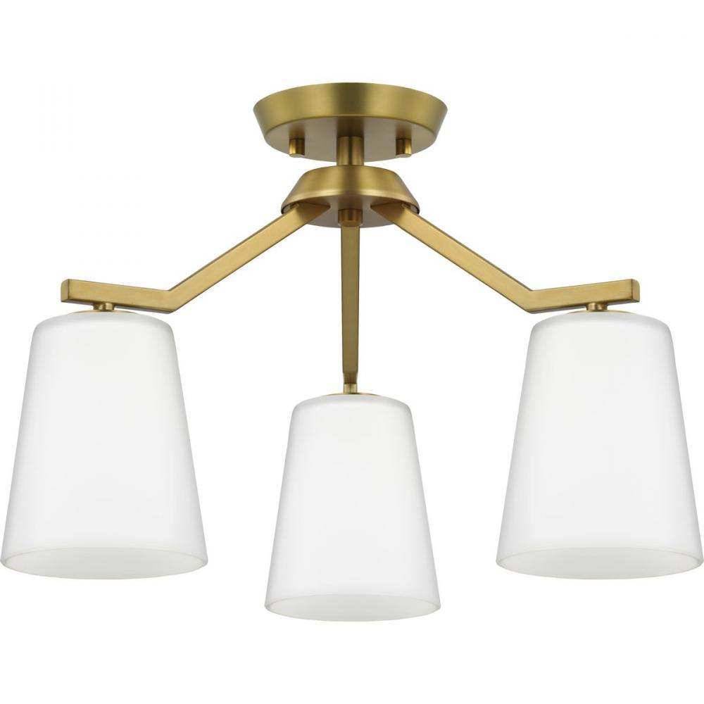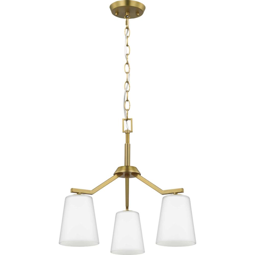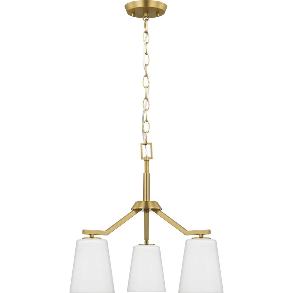 Elegantly extended, the Vertex convertible chandelier is composed of angular forms to create a bold design that perfectly complements halls, foyers and breakfast nooks in modern interiors. Its distinctive silhouette is coated in a soft brushed gold finish. An etched glass shade offers bright illumination to spaces below. This versatile fixture can be converted to a chandelier using the included 48 inches of chain or installed as a semi-flush mount fixture.
