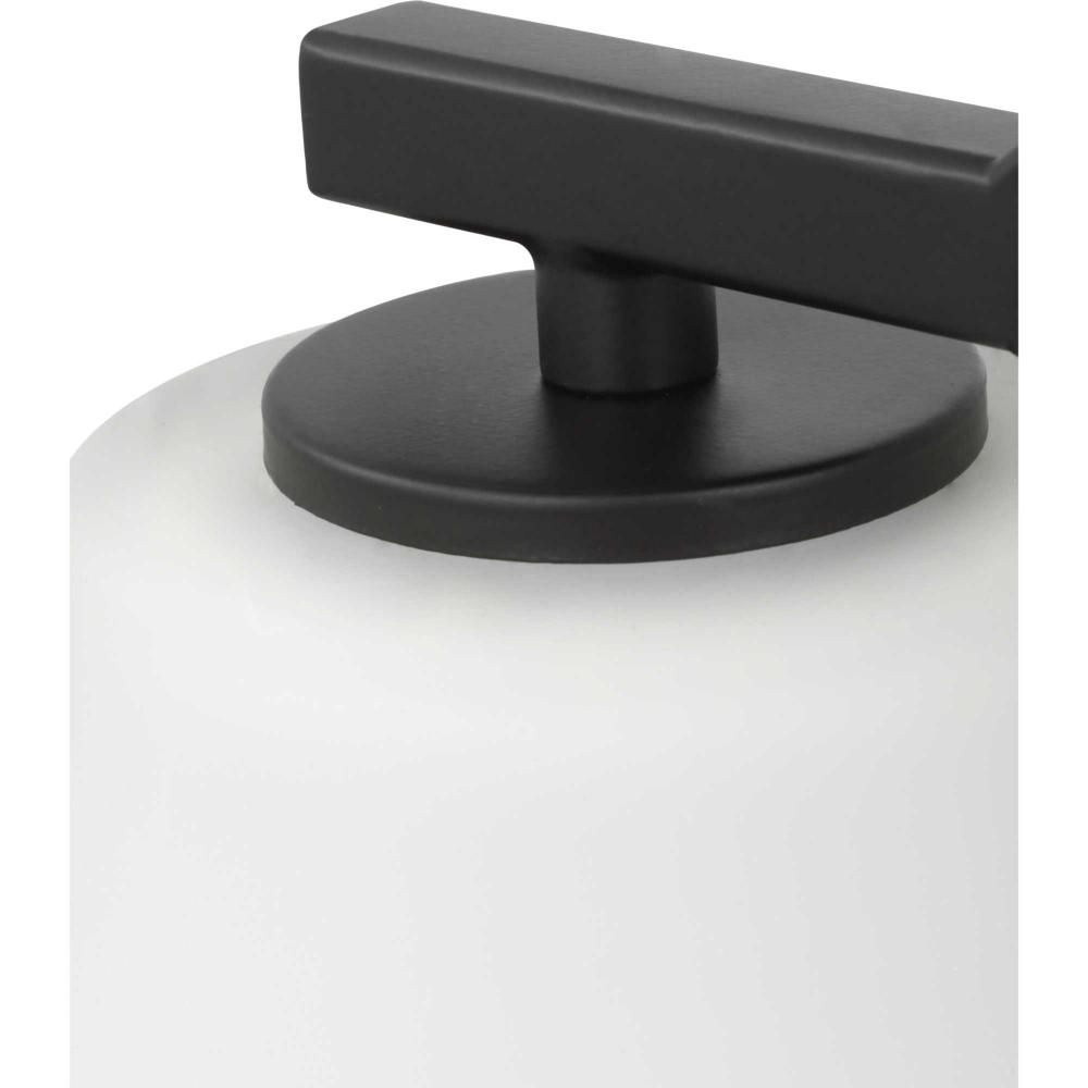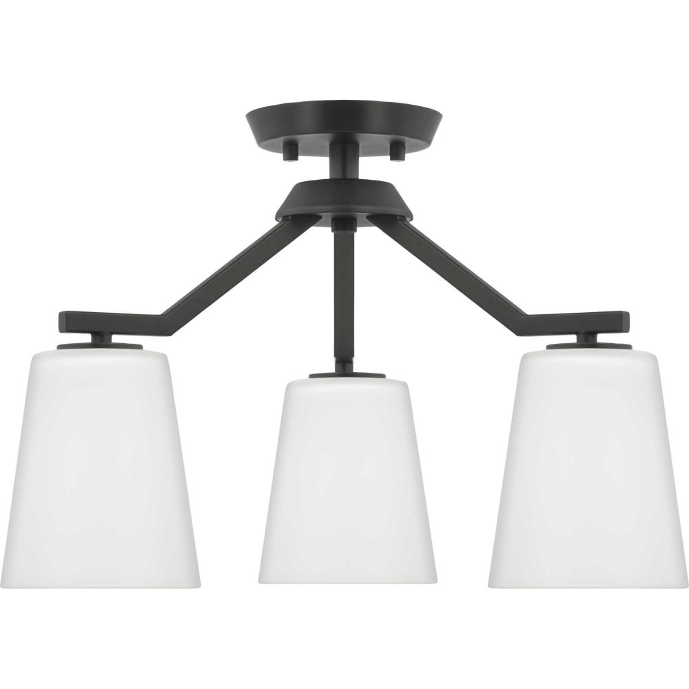 A lovely classic matte black frame define the fixture's distinct, angular silhouette