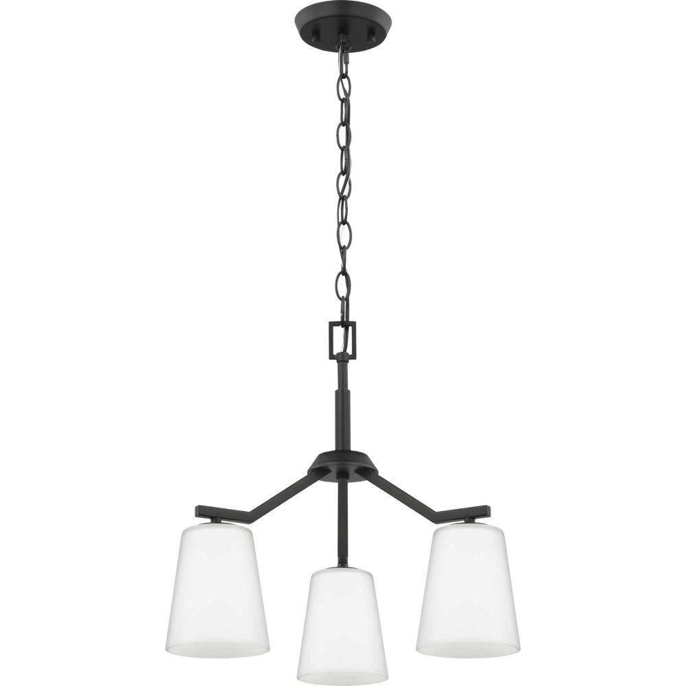 Elegantly extended, the Vertex convertible chandelier is composed of angular forms to create a bold design that perfectly complements halls, foyers and breakfast nooks in modern interiors. Its distinctive silhouette is coated in a crisp matte black finish. An etched glass shade offers bright illumination to spaces below. This versatile fixture can be converted to a chandelier using the included 48 inches of chain or installed as a semi-flush mount fixture.