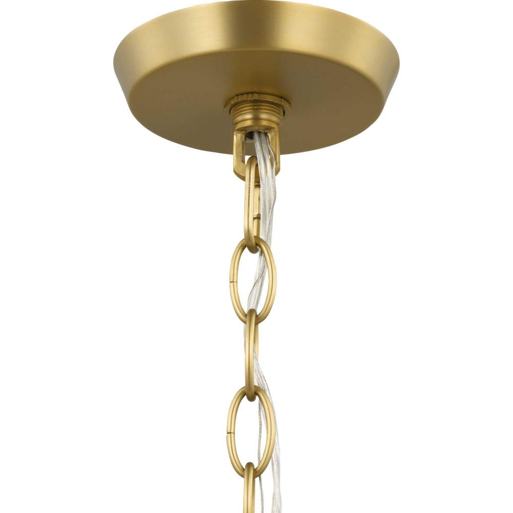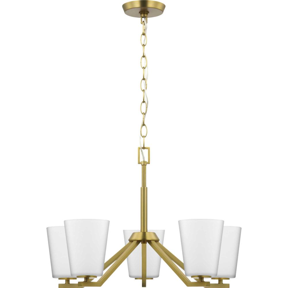 Elegantly extended, the Vertex chandelier is composed of angular forms to create a bold design that perfectly complements dining rooms and living rooms in modern interiors. Its distinctive silhouette is coated in a soft brushed gold finish. An etched glass shade offers bright illumination to spaces below. Customize the chandelier's hanging height to your ceiling using the Included 48 in. of chain for a variety of ceiling heights and sloped ceilings.