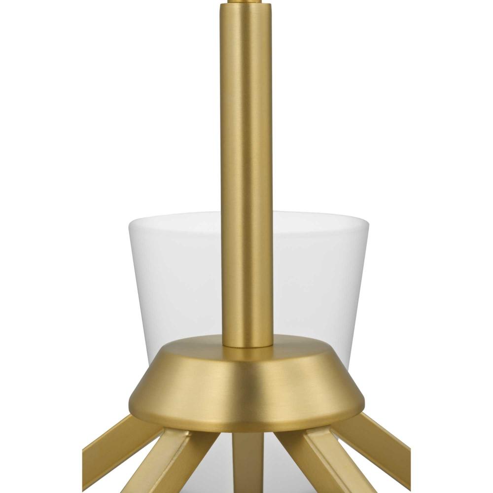 A lovely brushed gold frame define the fixture's distinct, angular silhouette
