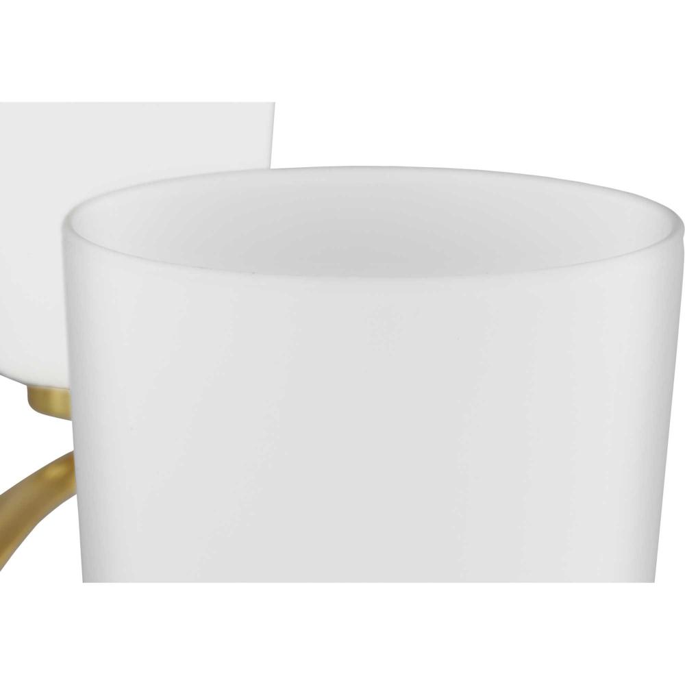 The clean design combines etched white glass shades with a curved arms and simple, straight bars