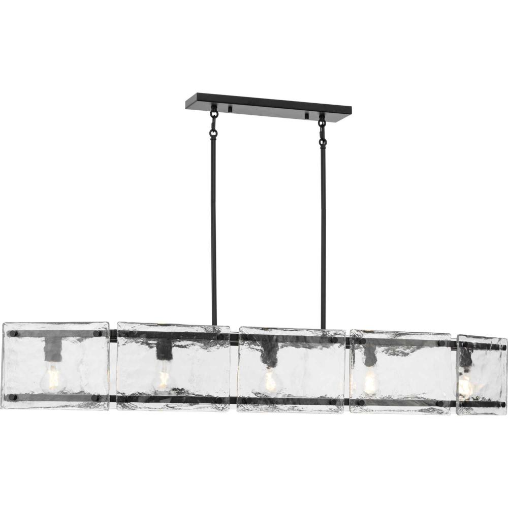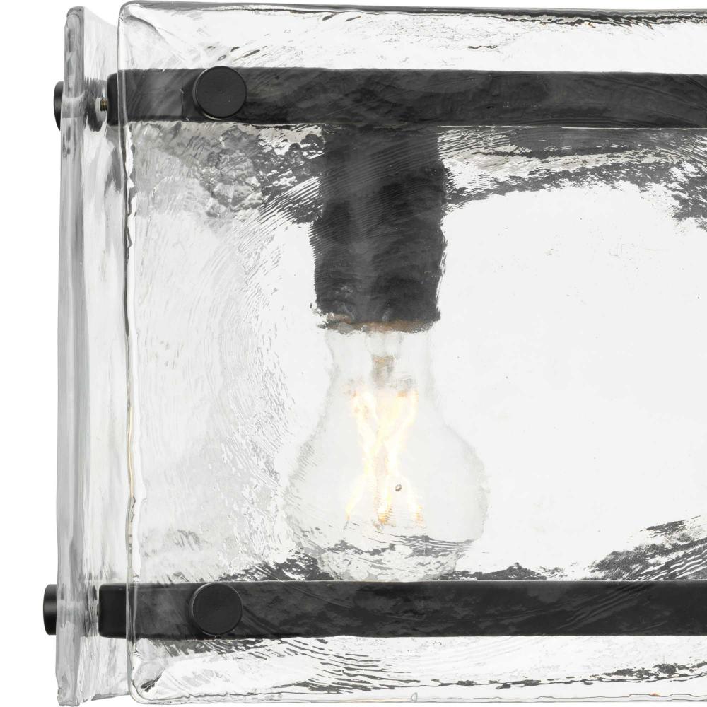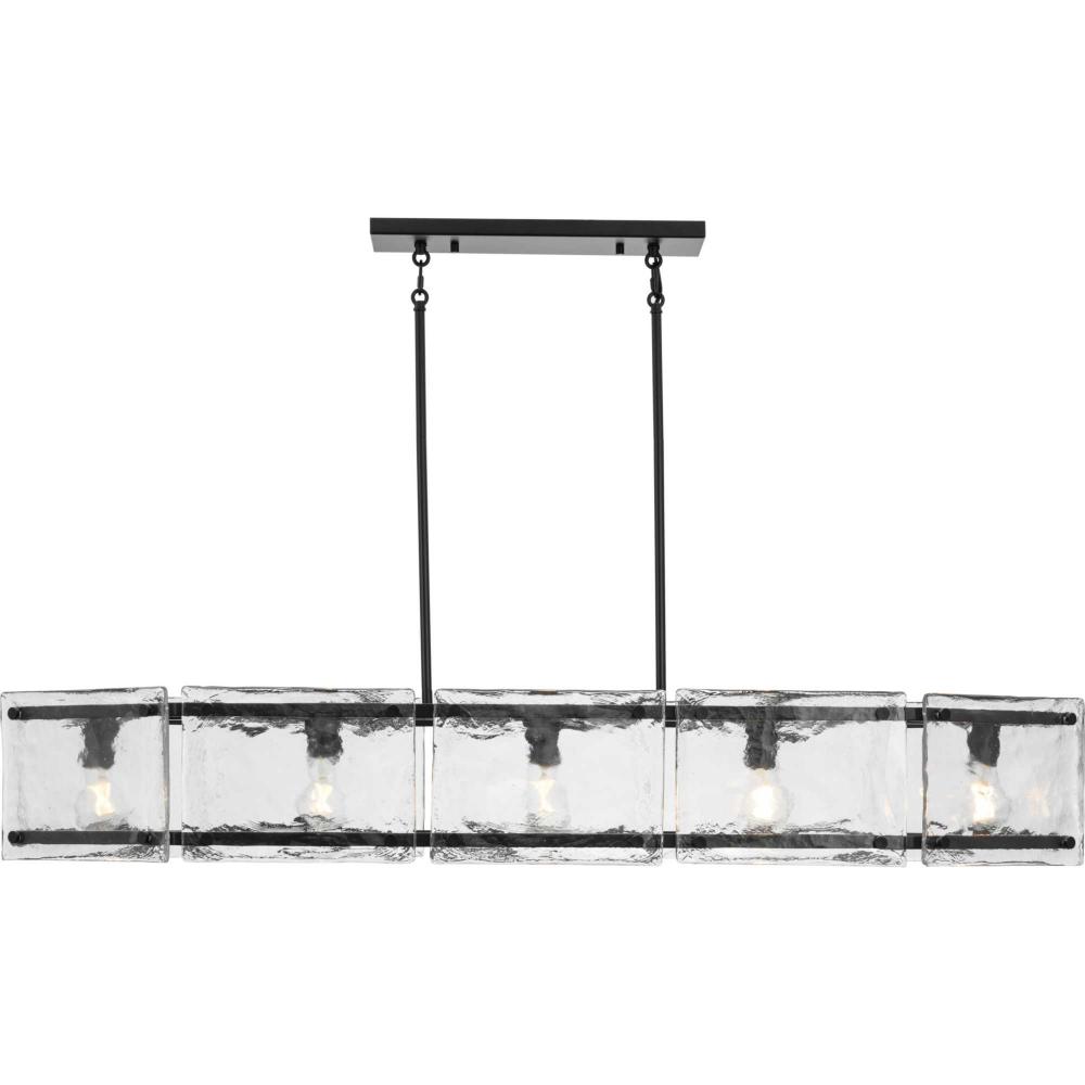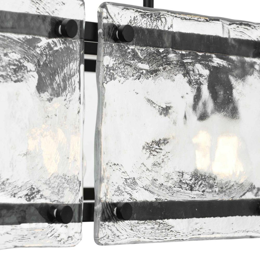 Indulge your artistic sensibility with luxurious lighting from the Rivera Collection. Softly filtered illumination through an icy display creates an otherworldly effect. Linear segments in rich, deep black tones frame billets of handcrafted, clear textured glass in a modern craftsman-inspired design.This fixture is part of the Progress Lighting Design Series, a lighting collection offering fashionable styles and affordable luxury lighting for the home.