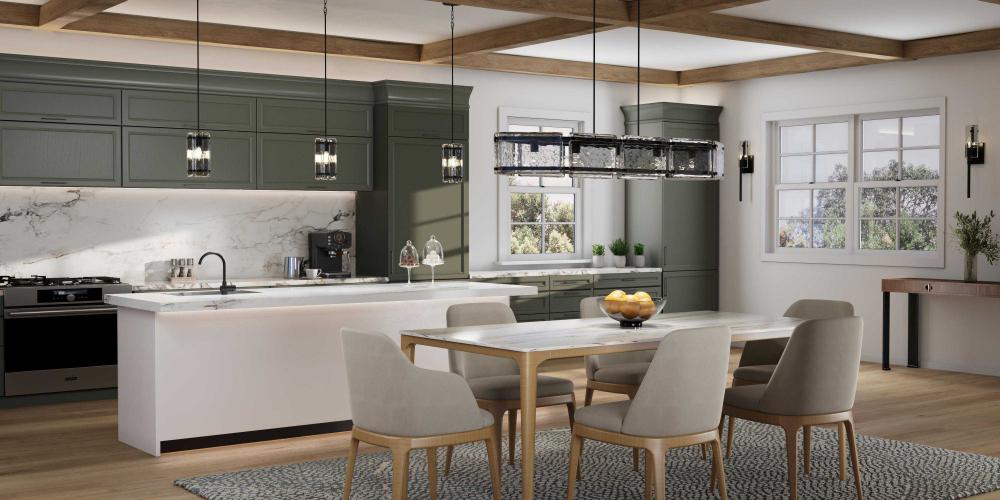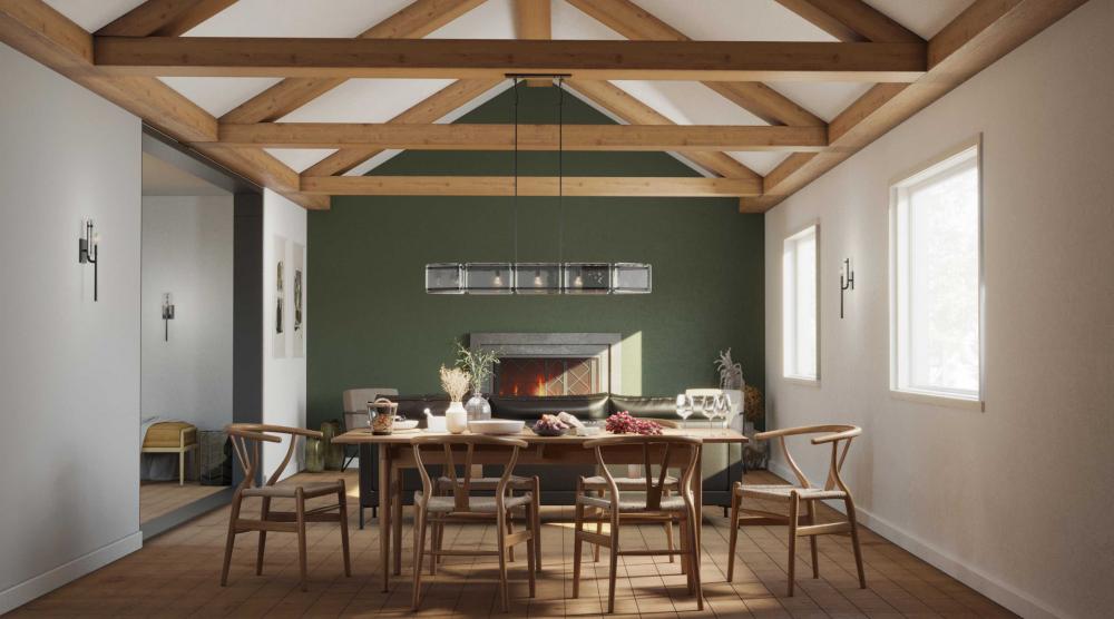 The fixture's artistic demeanor accents dining rooms, great rooms and kitchens