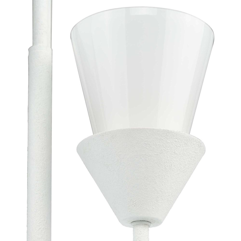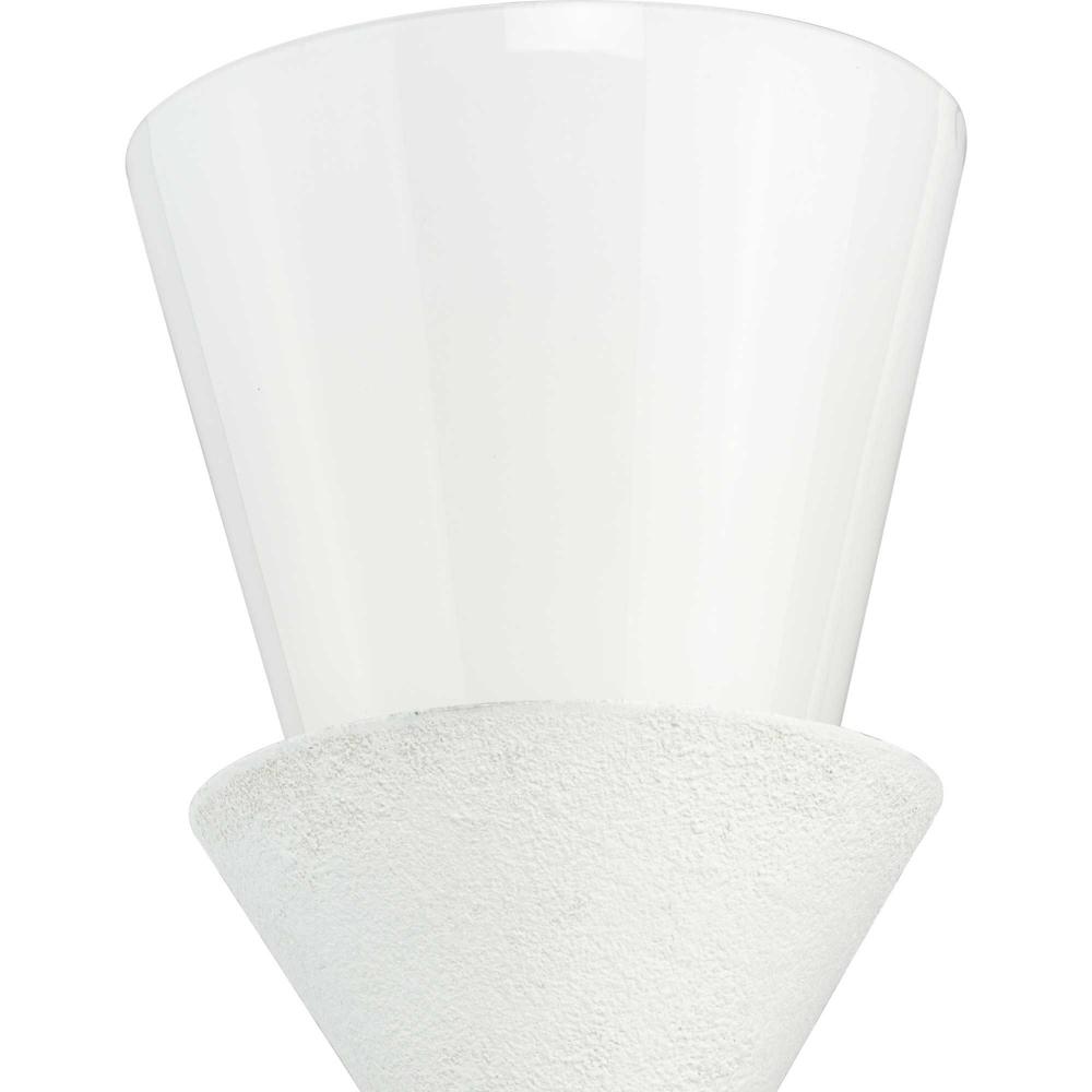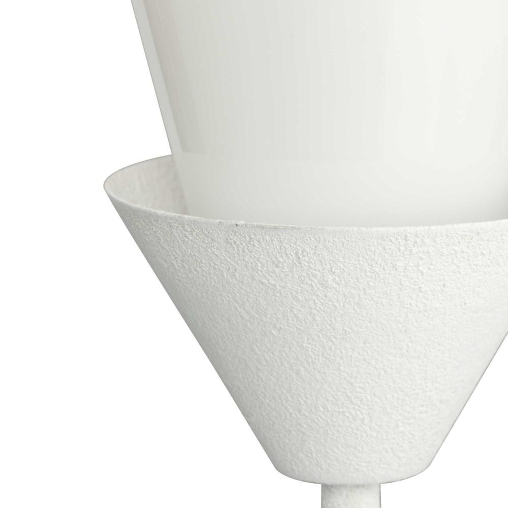 A white plaster finish emphasizes the light's conical design