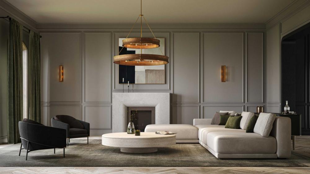 Luxurious textures and golden elements accent modern organic, luxe industrial and contemporary designs