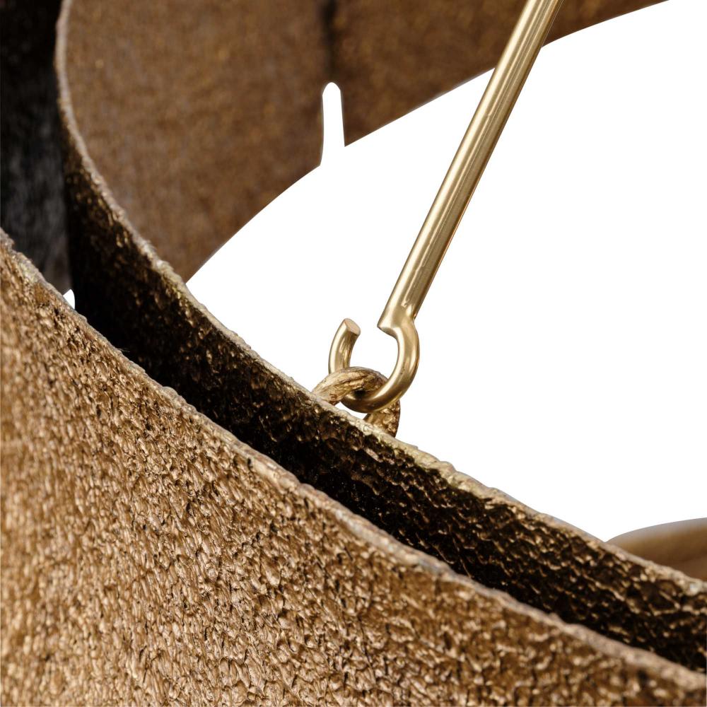The light's artisanal, textured elements offer a vintage feel in contemporary rooms