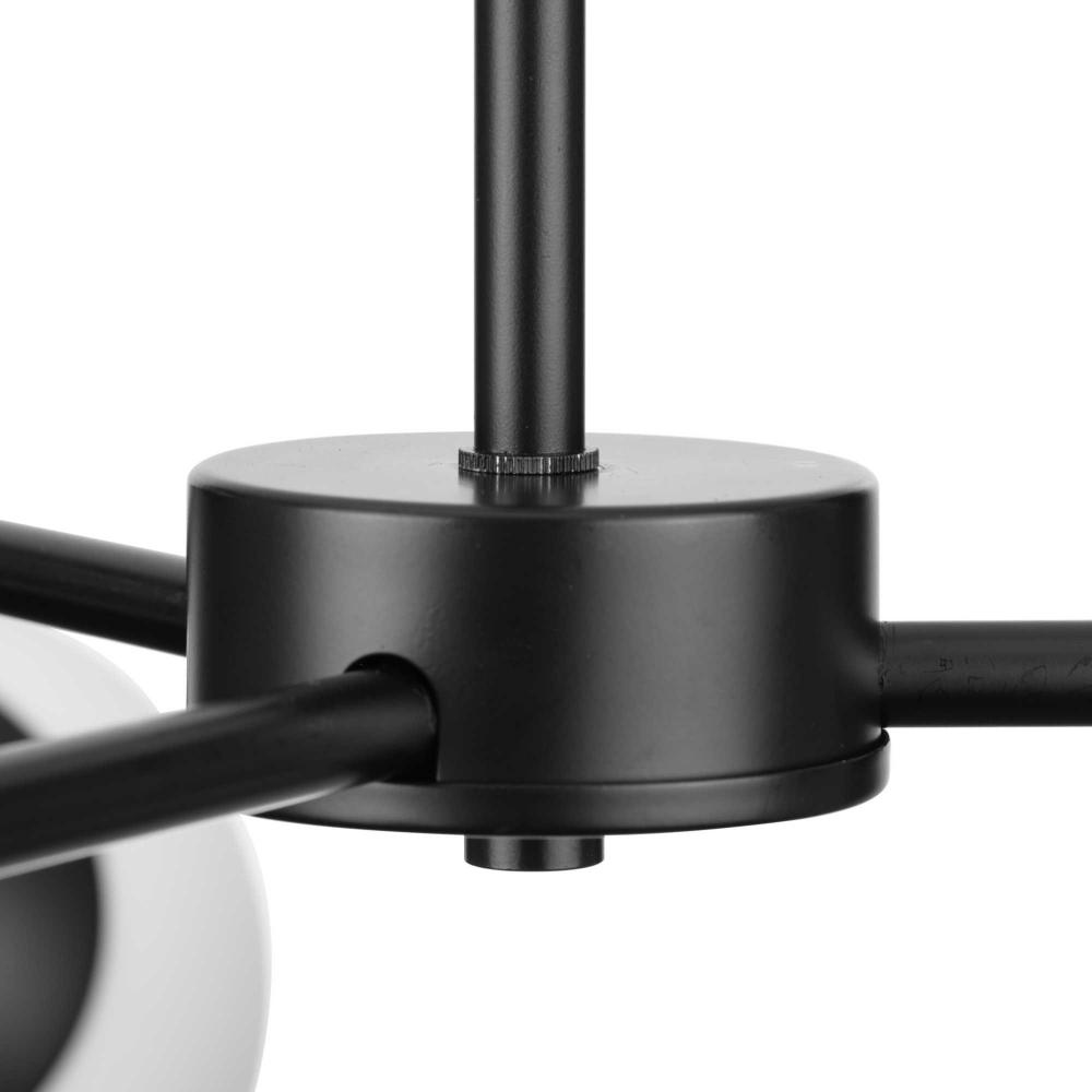 Modern and organic inspirations elegantly meld together in Haas. A bold linear frame finished in Matte Black branches out to embrace smoothly etched opal glass globes that imbue rooms with soft illumination, and fits beautifully into timeless modern, mid-century modern and contemporary settings. The flexible arms of this fixture allows the fixture to be positioned flat or at an angle giving the ability to customize the look. This fixture is part of the Progress Lighting Design Series, a lighting collection offering fashionable styles and luxury lighting for the home.