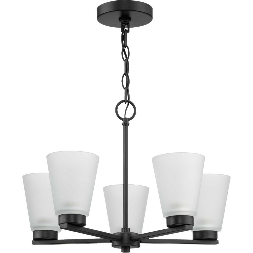 Fill your house with the lively Tanner family of fixtures. Strong lines accent the Matte Black frame in a simple balance of form and function, while soft etched glass shades complement the design. The hanging height is easily customized for your space with the included chain.