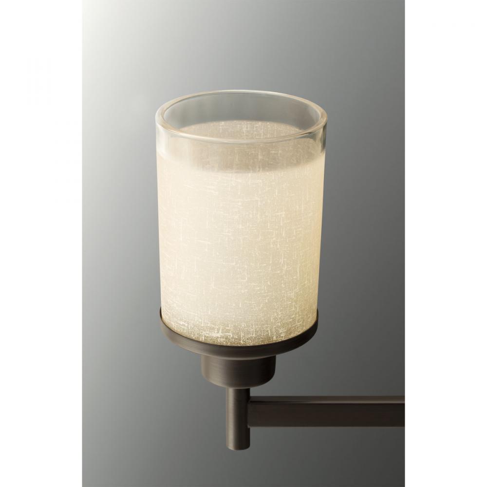 Antique Bronze finish.;Etched umber linen finished glass.;Vintage mid-century modern look.