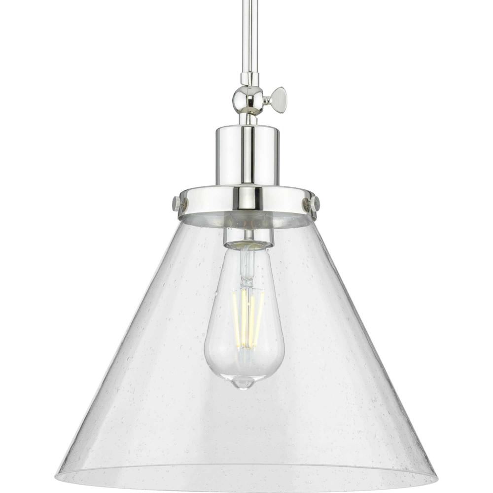 Application: Embrace stylish simplicity with the Hinton Collection 1-Light Polished Nickel Clear Seeded Glass Vintage Hanging Pendant Light is ideal for any foyer, dining room, kitchen, breakfast nook, entryway, living room, or stairway.;Styles: Perfect fo
